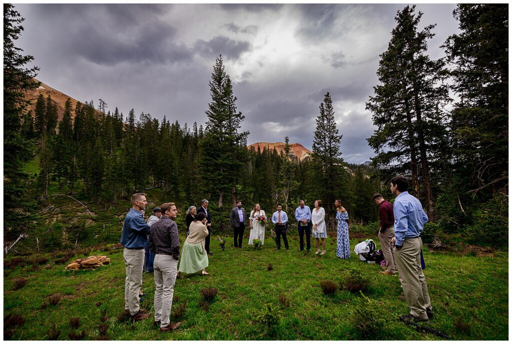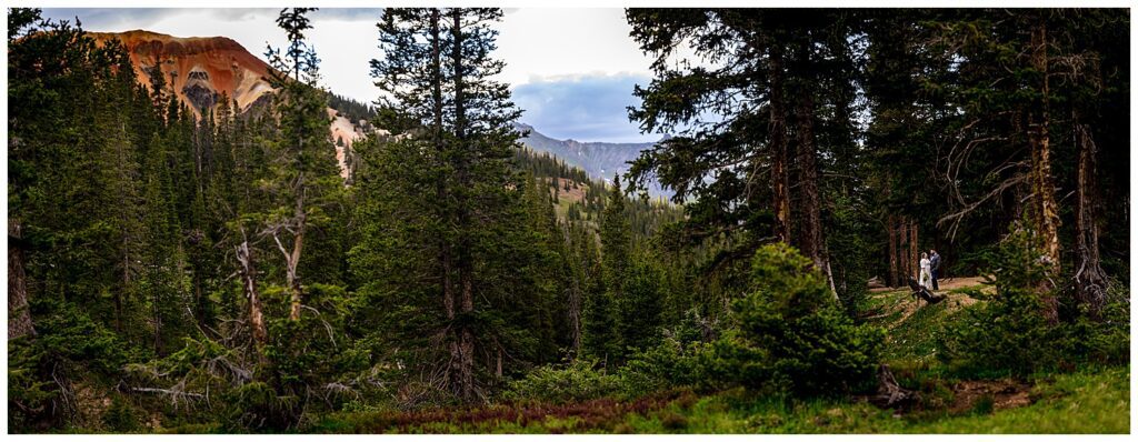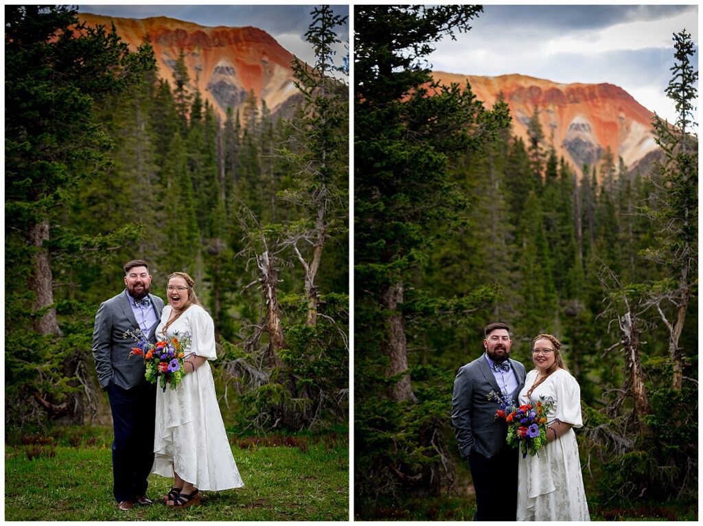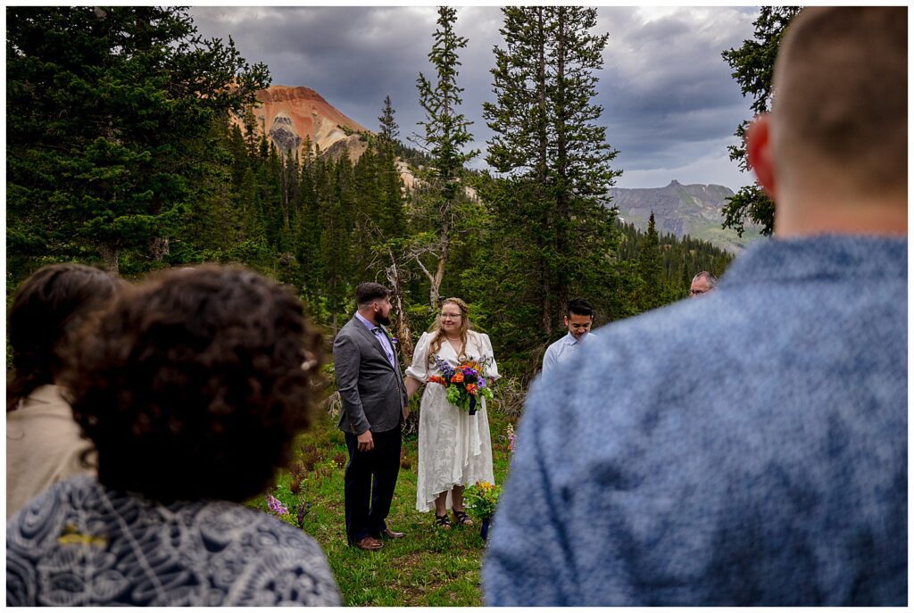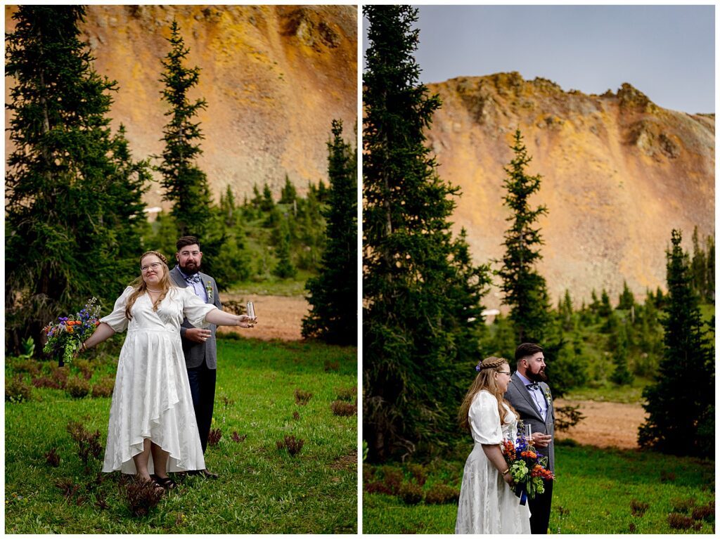 When Linda and Shawn visited Silverton and Corkscrew Gulch a few weeks prior to their elopement, they found the PERFECT nook to host their ceremony, toasts, and some snackies. It was just as we were starting to exit the forest, had a large legal parking lot (which is always something to consider on 4×4 roads – make sure to stay the trail!), and the views were simply spectacular.