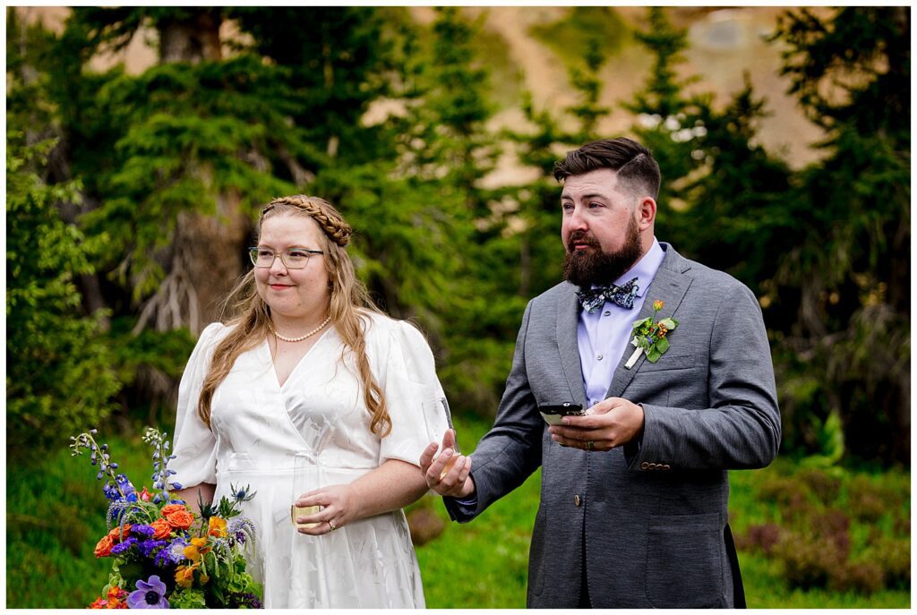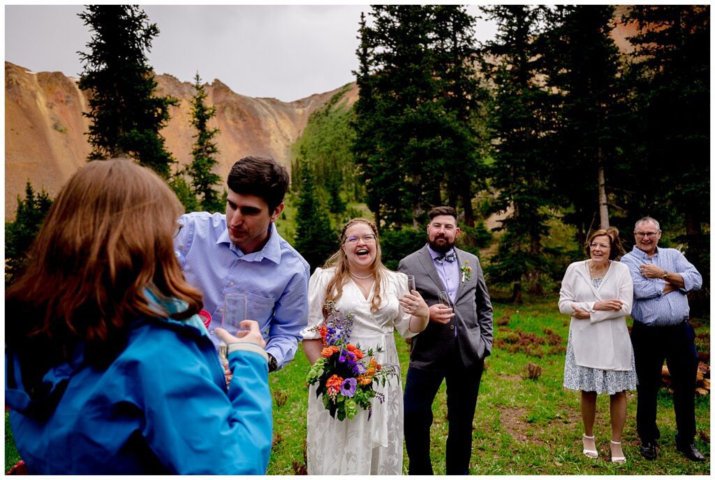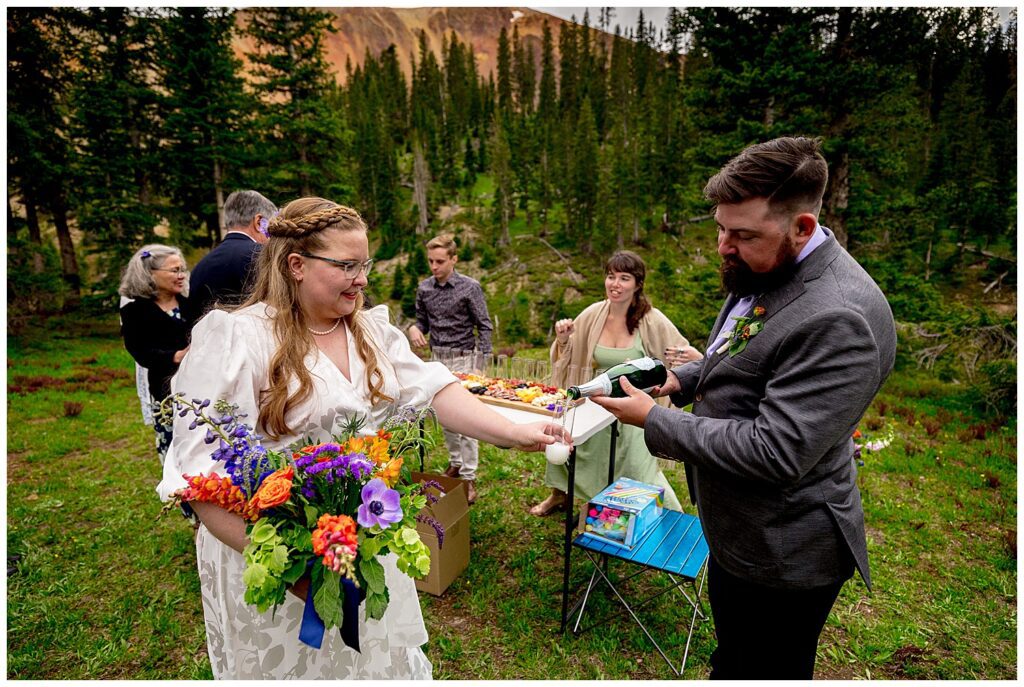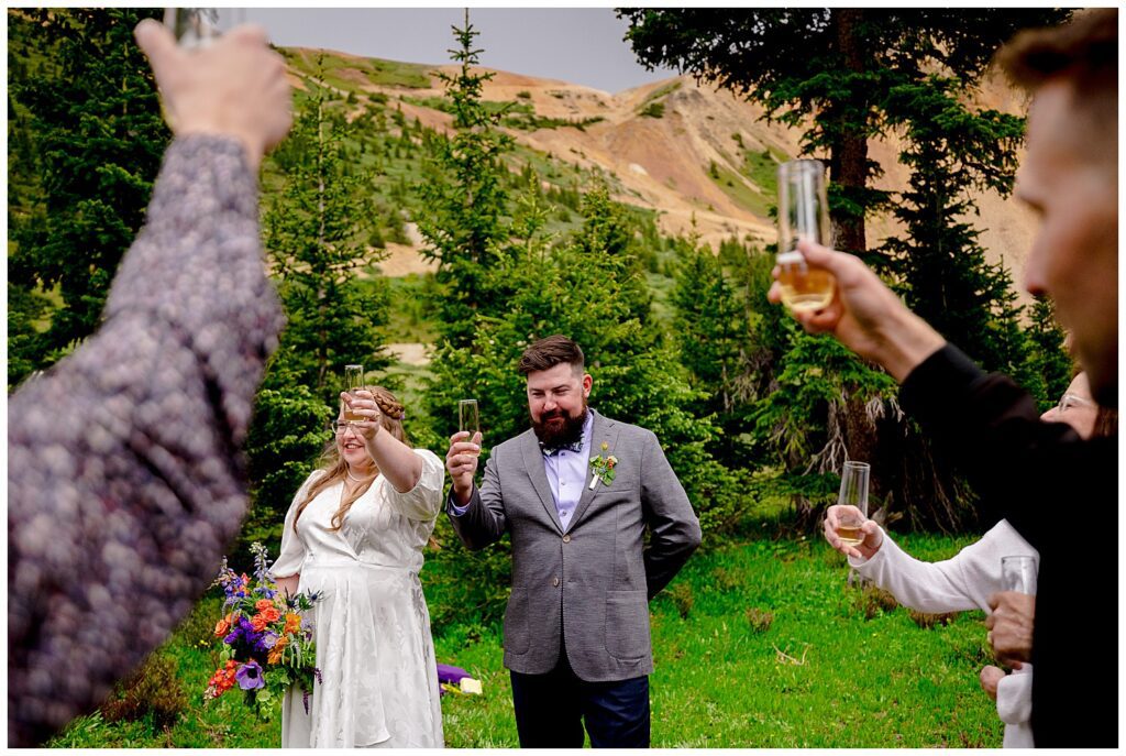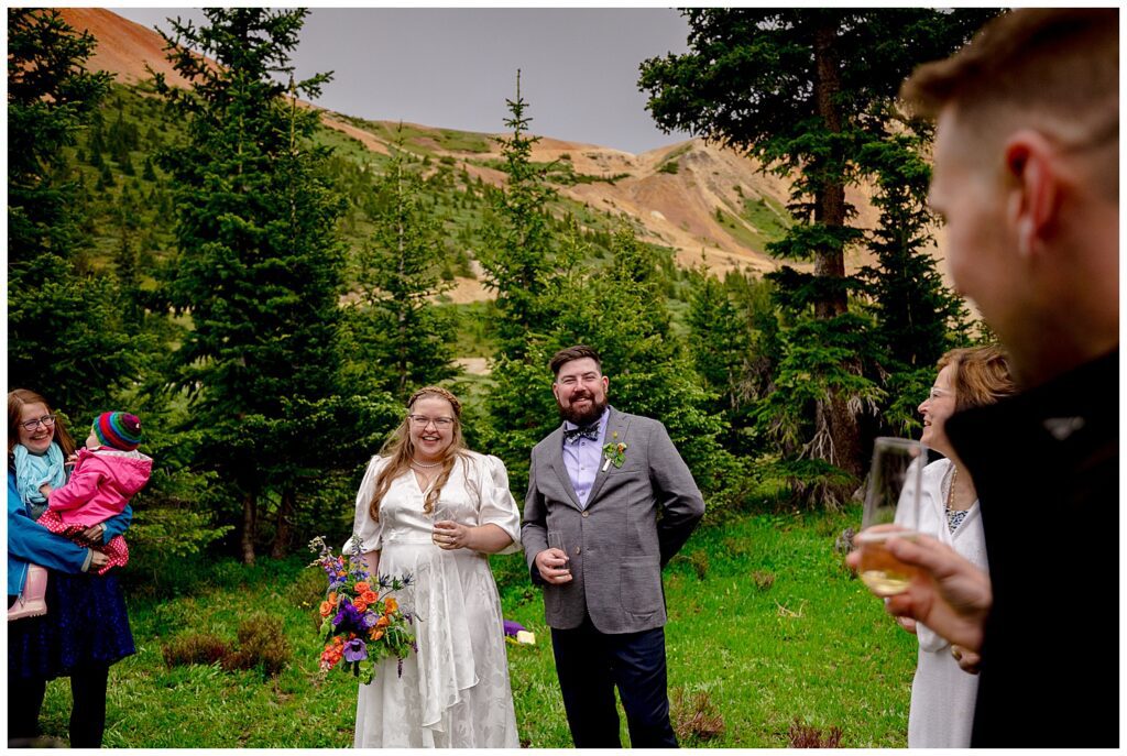 When Linda and Shawn visited Silverton and Corkscrew Gulch a few weeks prior to their elopement, they found the PERFECT nook to host their ceremony, toasts, and some snackies. It was just as we were starting to exit the forest, had a large legal parking lot (which is always something to consider on 4×4 roads – make sure to stay the trail!), and the views were simply spectacular.
