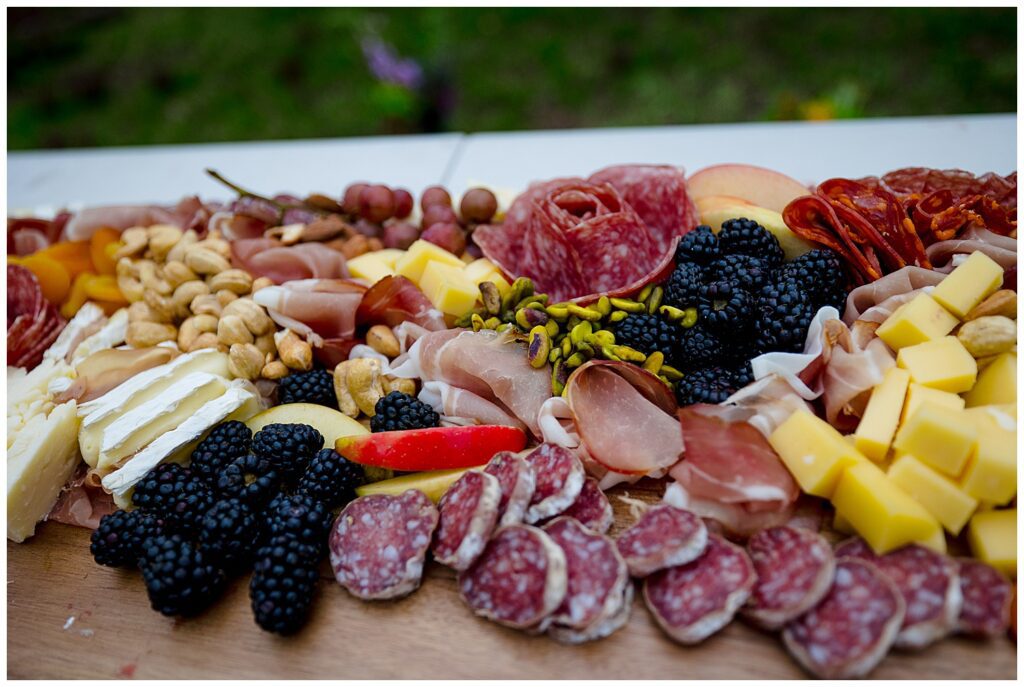 Once they were Mr. and Mrs. officially, a charcuterie board (handmade by family and friends at that) was brought out along with some champagne to celebrate and toast. As family members were making their toasts to the newlyweds, we were graced with some glorious sunshine popping through the distant storm clouds.