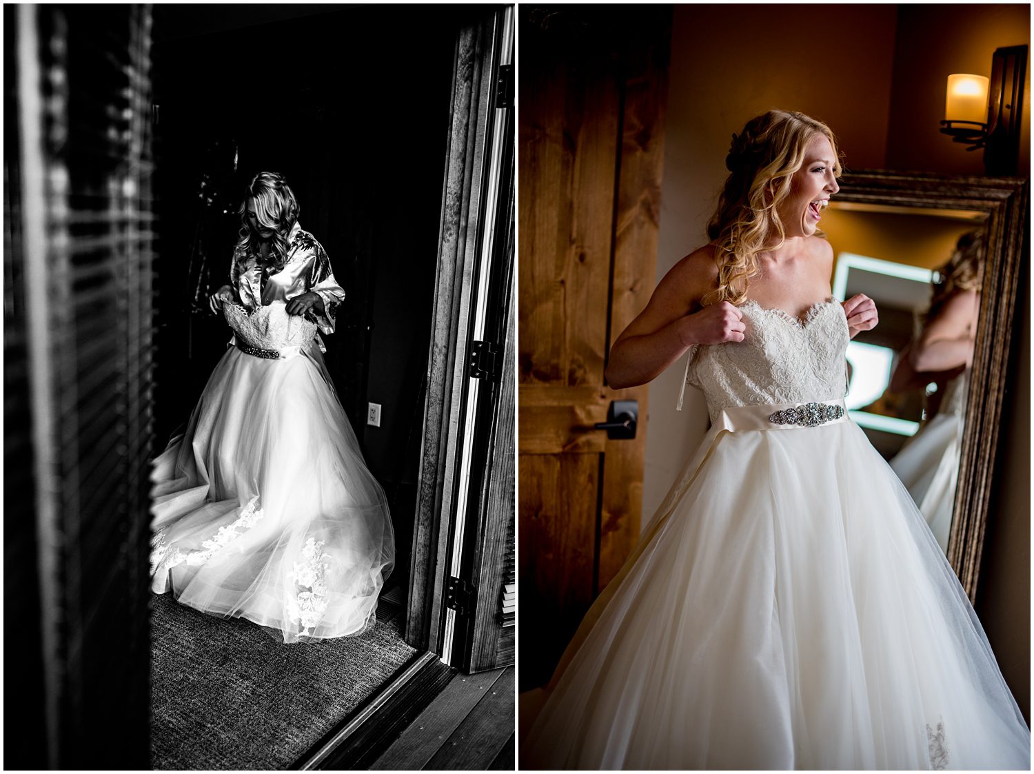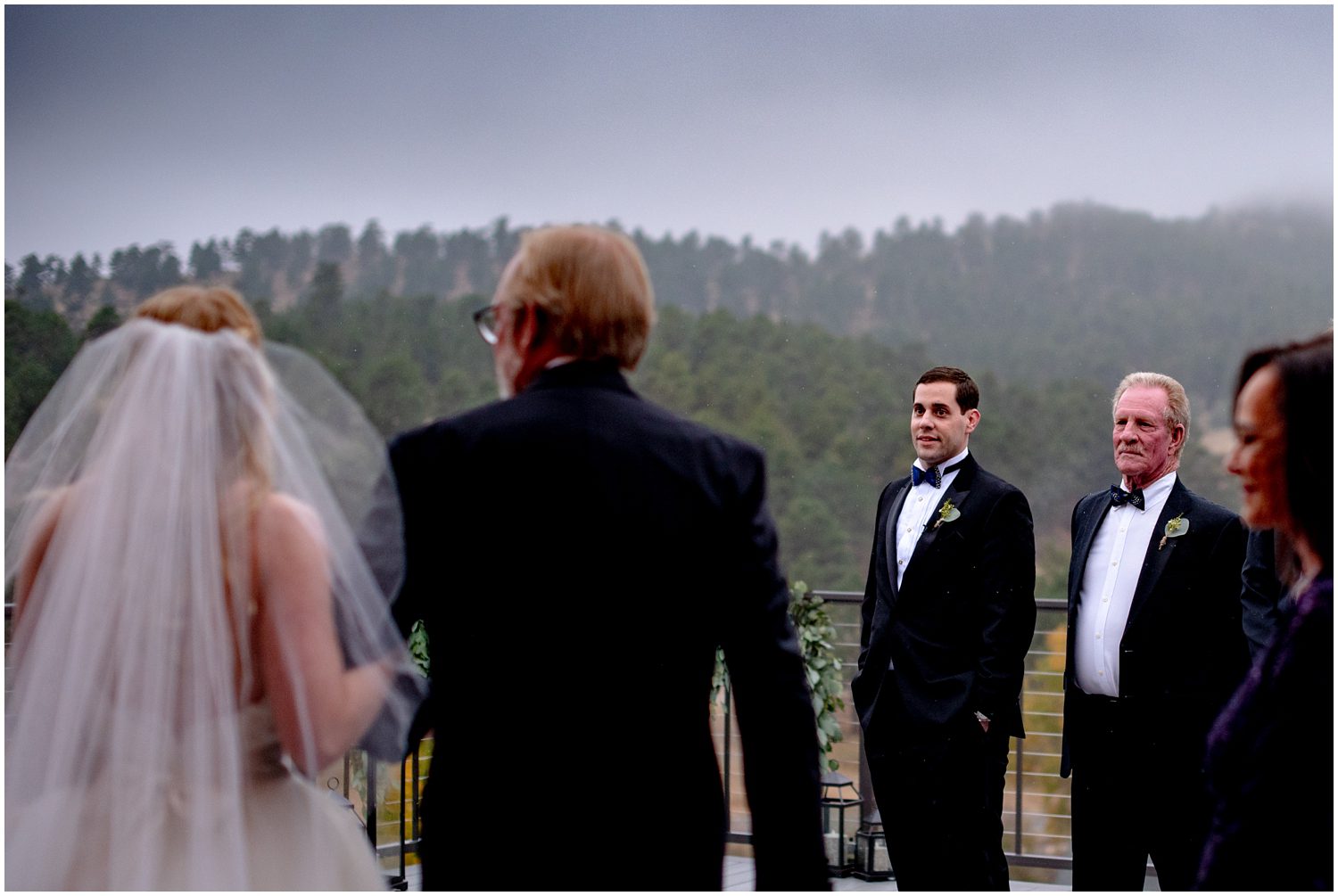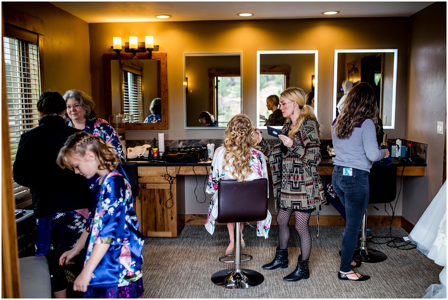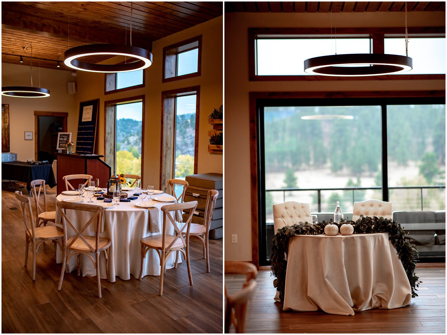 I’ve been to Fall River Village before, and was incredibly excited to see the new Sky View wedding venue that opened this past August. I met Cecily and Jimmy at Sky View to get ready, where Cecily was in the bridal suite and Jimmy was in their rental property just across the way. Coming out from Virginia for their Colorado destination wedding, the bride and groom decided to have their first look in the stunning Rocky Mountain National Park at Sheep’s Lakes. Cecily headed up with myself and we met Jimmy (along with my secondary photographer, Melissa) right along the roadside. Mountains and fall color were what we were in search for all afternoon – and we were able to get both despite the cold snap and fog descending over Estes Park the day of the wedding.