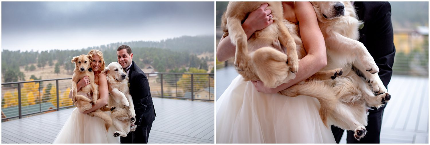 We snaked our way back down hwy 34 towards Sky View, and met all the family, friends, and most importantly THE DOGS(!!) for portraits. I knew from our first conversation (where I skyped and “met” their older pup) that the doggies would be a very important part of Cecily and Jimmy’s Estes Park wedding day. The “Ring Pups” were such good troopers, and really listened (for the most part) to their bridal party duties.