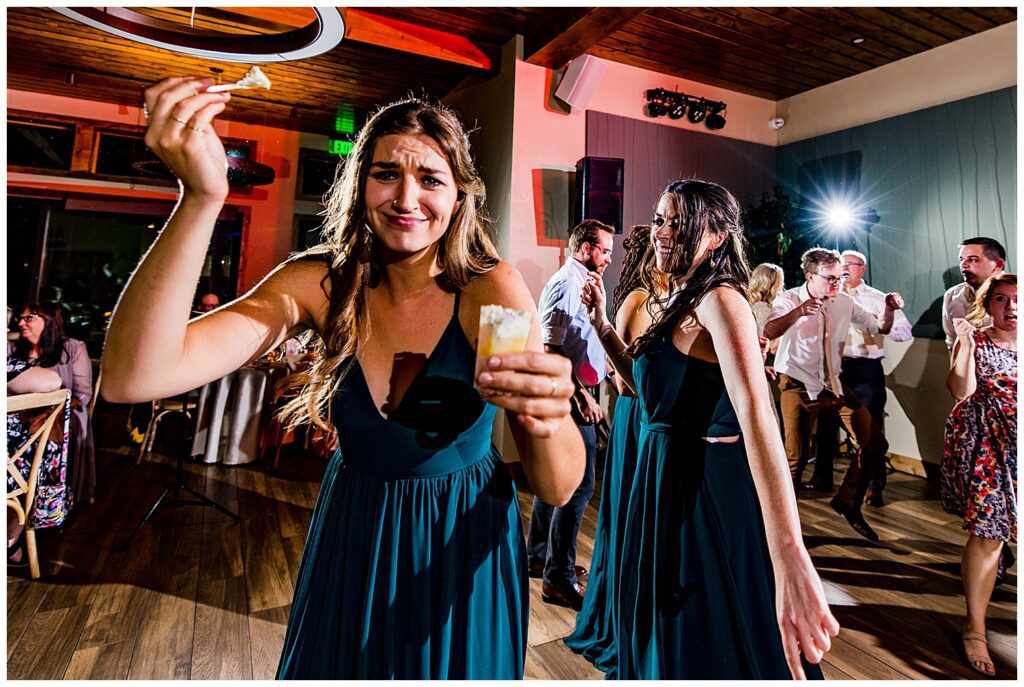 I can’t remember a reception where I danced as much as I did this evening. I was jumping, eating cake on the dance floor (including holding my camera in the other hand), dropping it low, dancing with glowsticks alongside their FABULOUS wedding coordinator (Seriously, Check out Laura with McArthur Weddings and Events), and left with my legs the consistency of Jello.