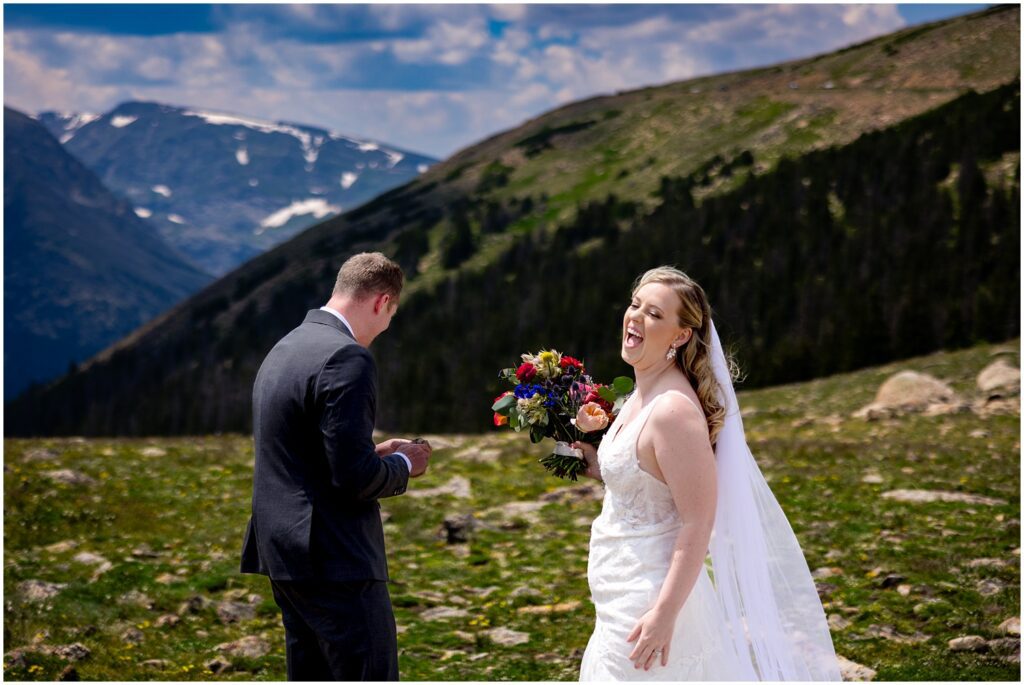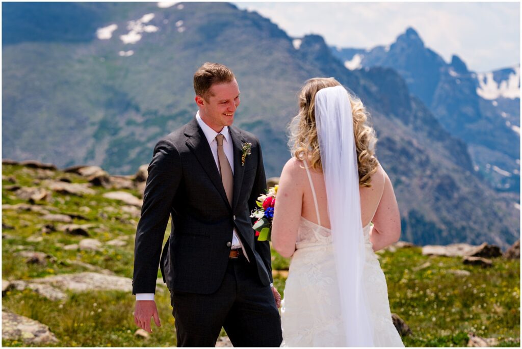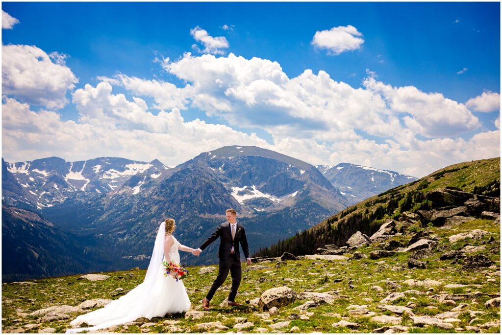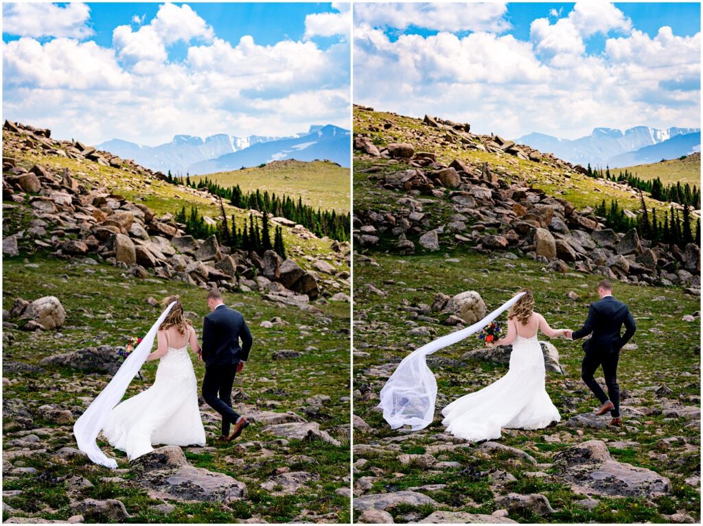 Rocky Mountain National Park’s proximity to SkyView makes it incredibly easy to head into the park for couple’s portraits. I had asked Rene and Eric the question I ask most summer couples when the roads are all open – did they want to make multiple stops down low or head up to the higher alpine fields and spend our time in that one area. They both agreed that heading up to the Ute Trail up top was the vision they wanted for their wedding portraits.