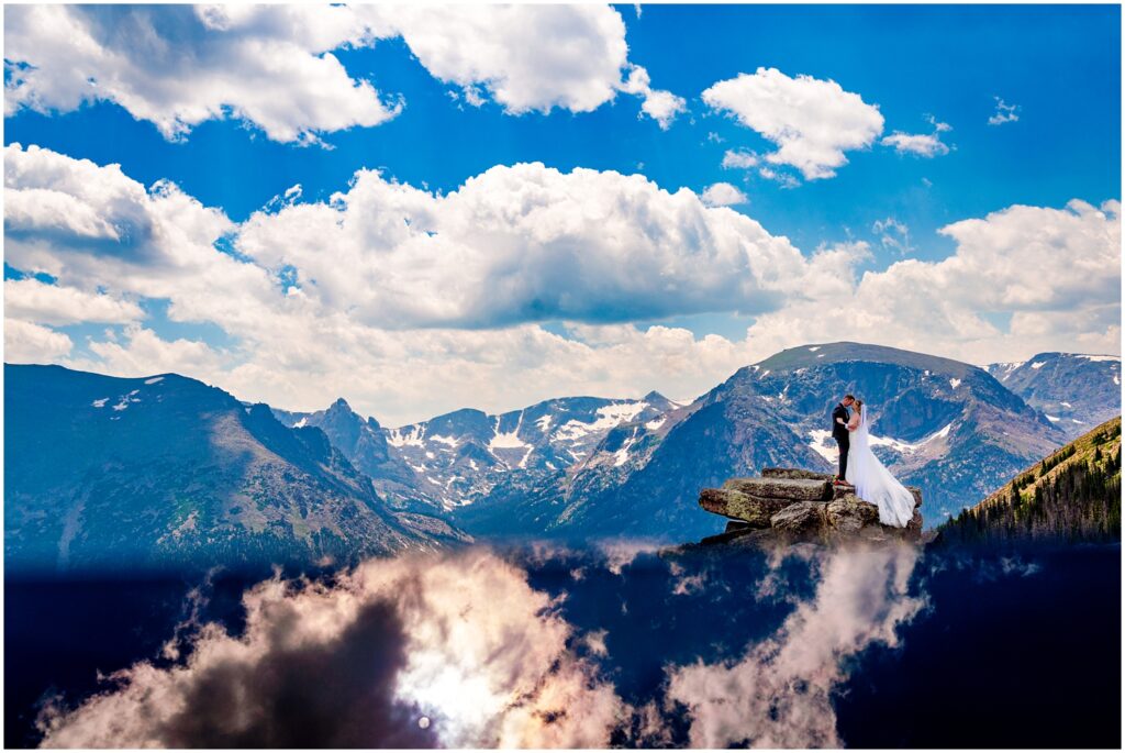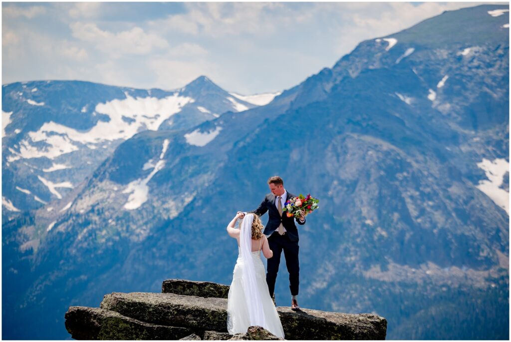 We made the drive up Trail Ridge Road in multiple vehicles so the two could have their first look with Mt. Ida booming in the background. After an emotional glimpse at one another, we ventured around the area jumping from rock formation to rock formation before we had to head back for pre-ceremony touch ups.