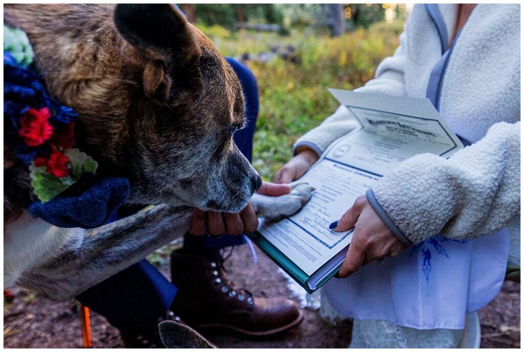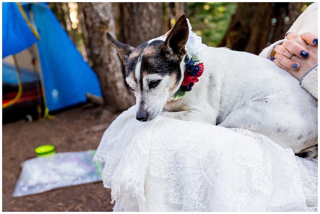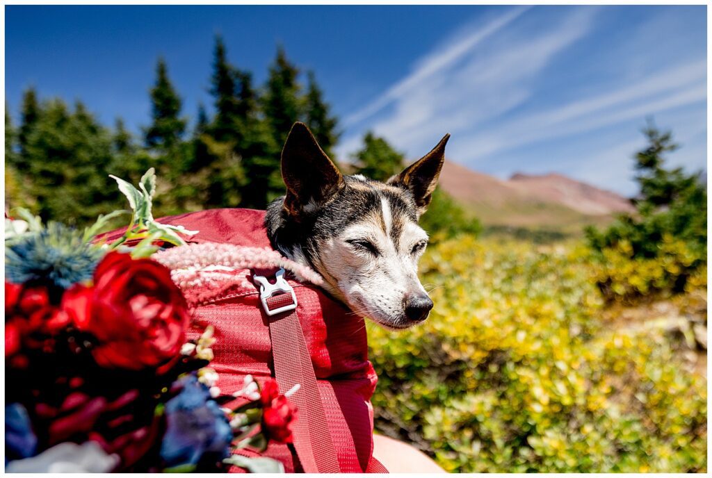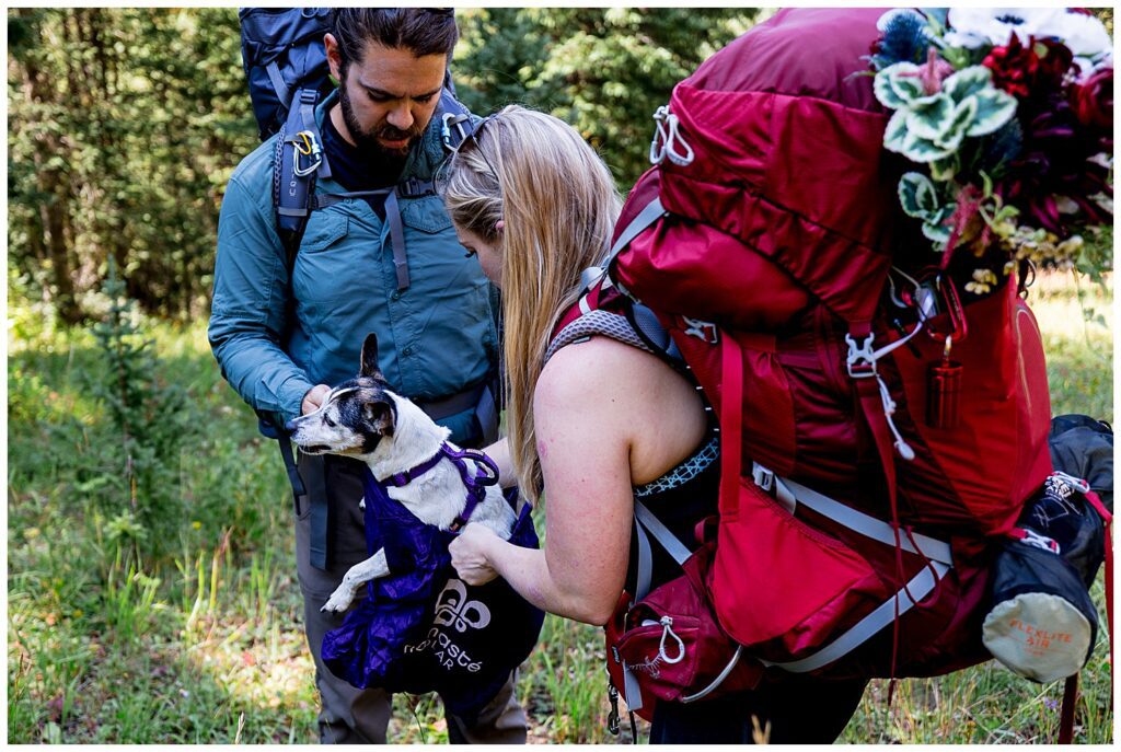 Maggie, the smaller of Katrina and Sean’s two dogs, was able to join us on her last big hike. She’s getting to be a little old lady – but with the help of her owners carrying her in their hiking packs, she was able to make it to their wedding day. I don’t know if I’ve ever seen a dog so happy to be rolled into a bag like a little burrito to then be carried around all afternoon.