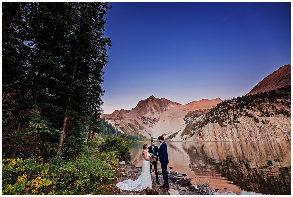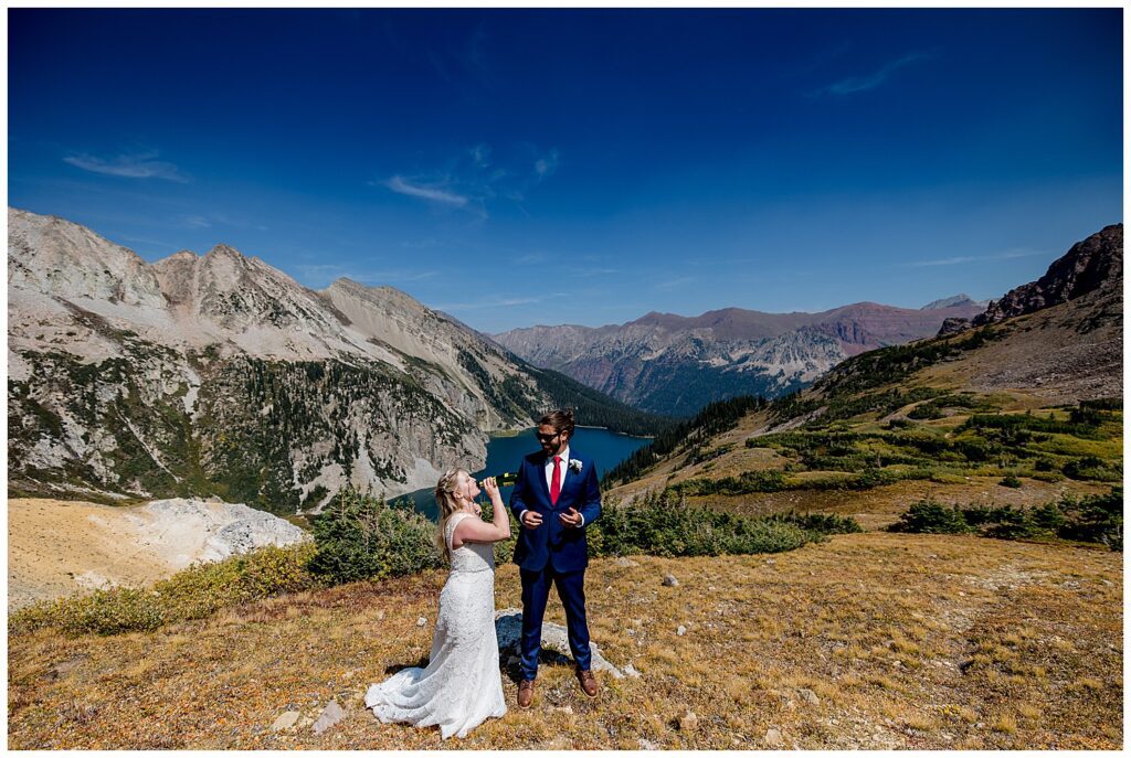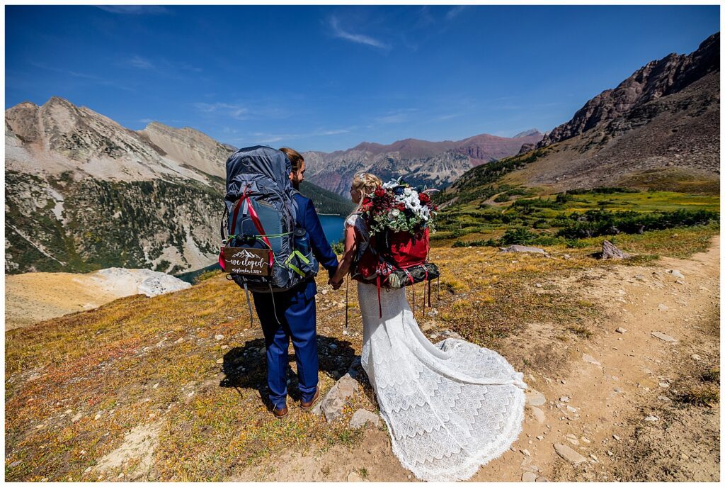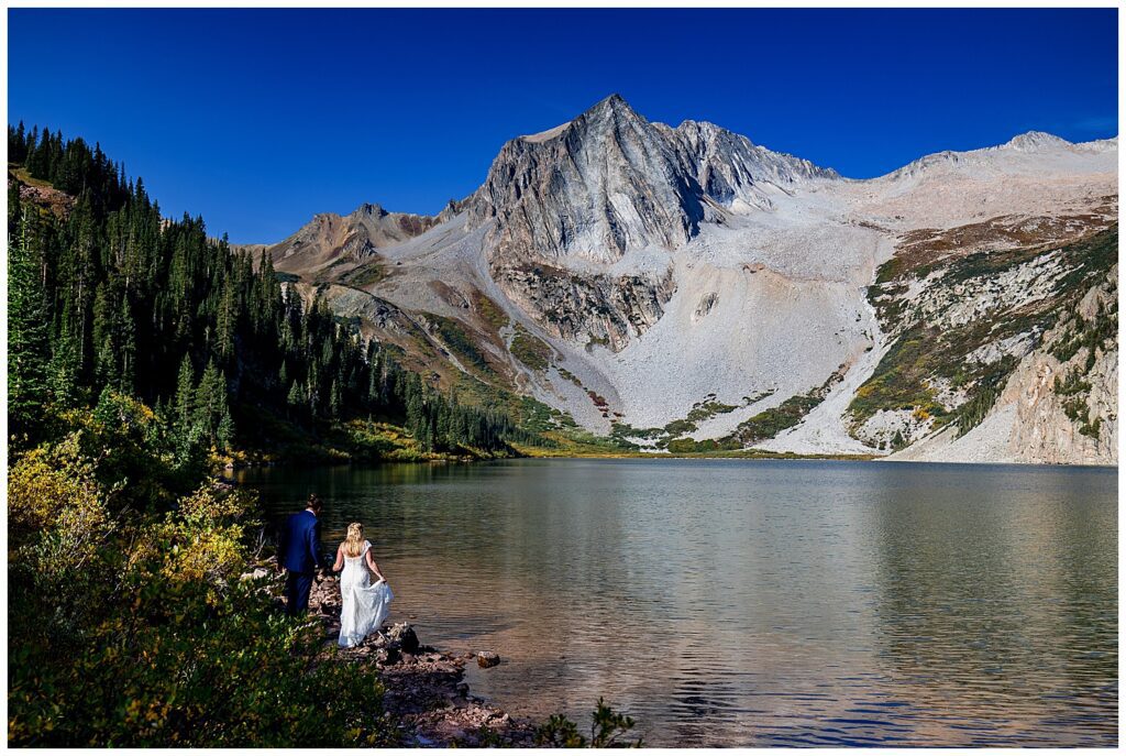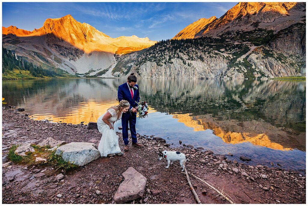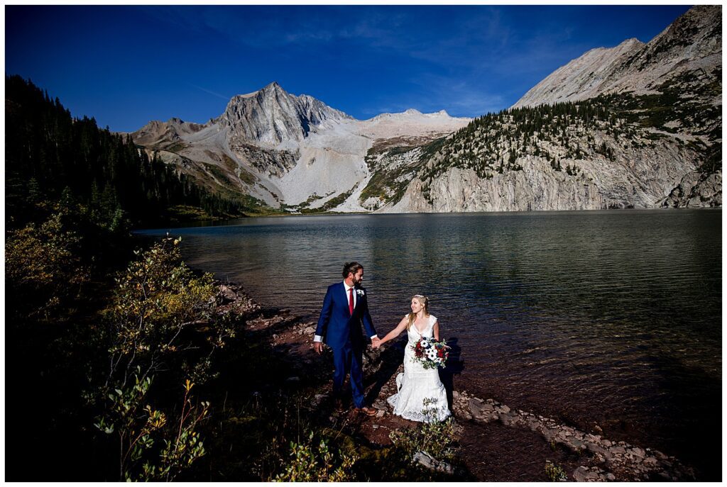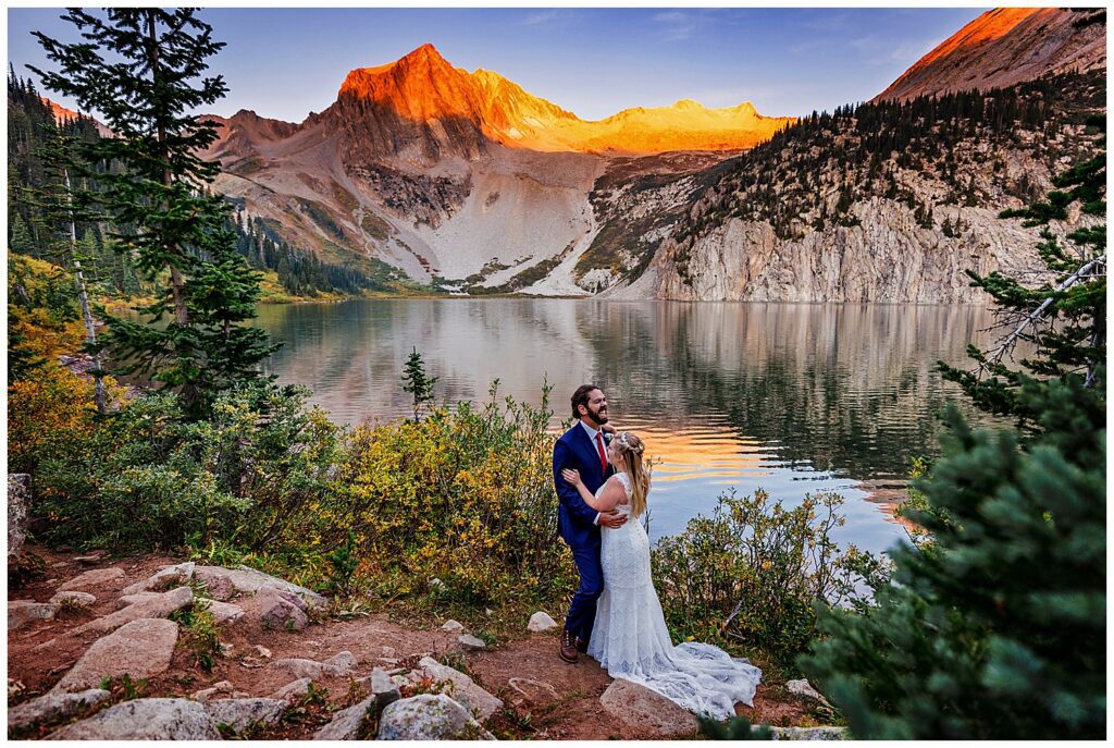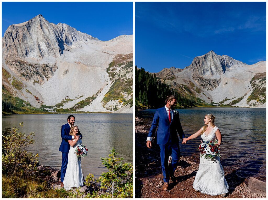 Katrina and Sean had fallen in love with Snowmass Lake on their hike of the Four Pass Loop in 2020 – knowing that they wanted to return to the stunning alpine lake for their elopement this past year.