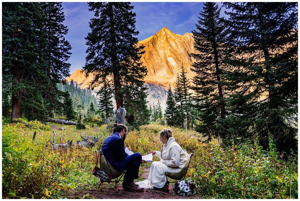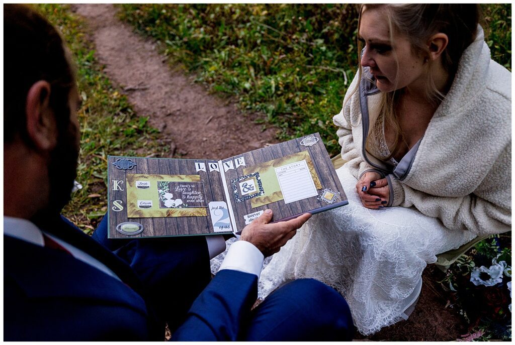 We spent the next few hours taking photographs around the area, eating a hefty breakfast, and reading letters that their loved ones had sent. Katrina and Sean had asked their friends and family that were back at home to write words of well wishes and congratulations in a beautiful book that they brought up to camp with them. This is one of my favorite ways for couples to include their family and friends who aren’t able to make it to an elopement.