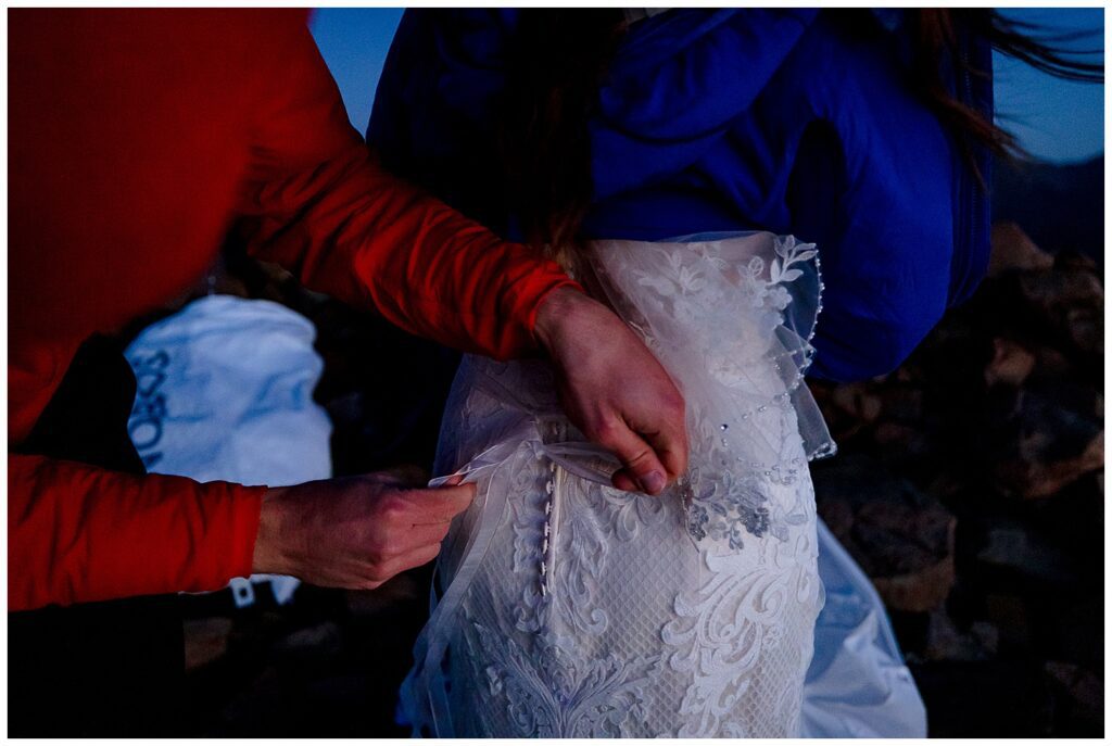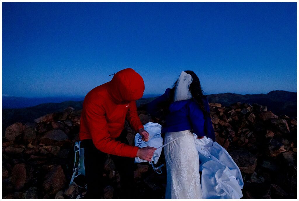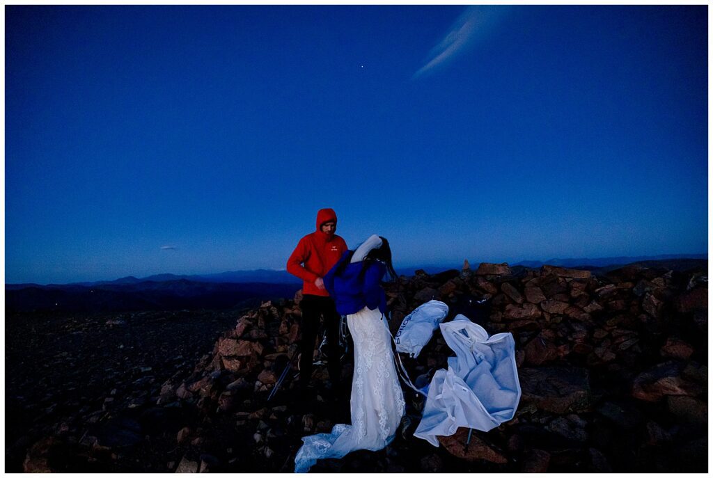As we got to the top of Loveland pass, we awaited the sun to break the horizon while Jenna and James changed into their wedding attire. I’ve been asked numerous times “where do we change” – and eloping at the top of a mountain leaves only the option that nature intended ;).