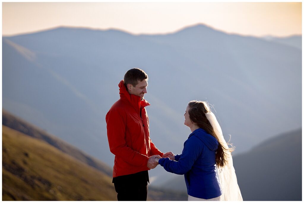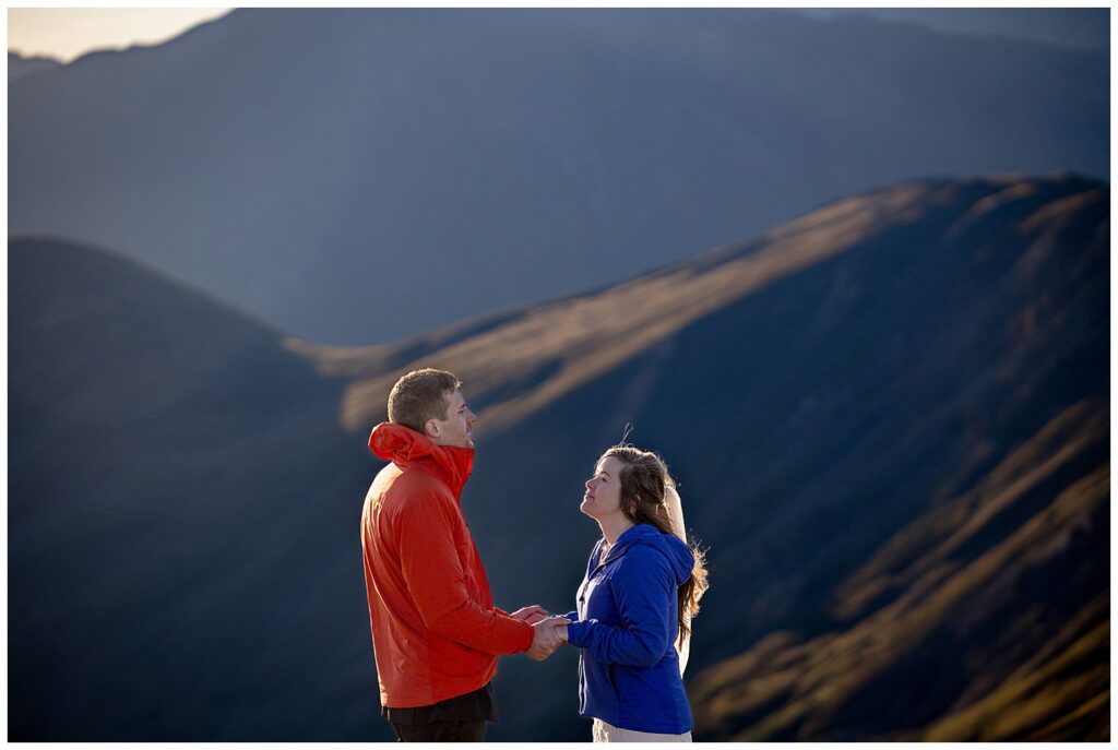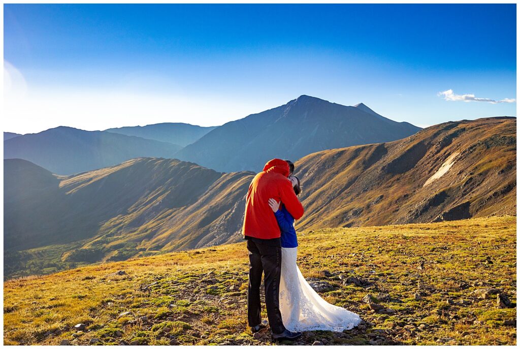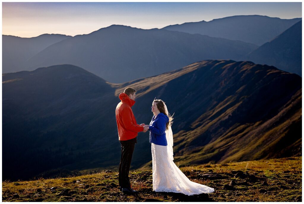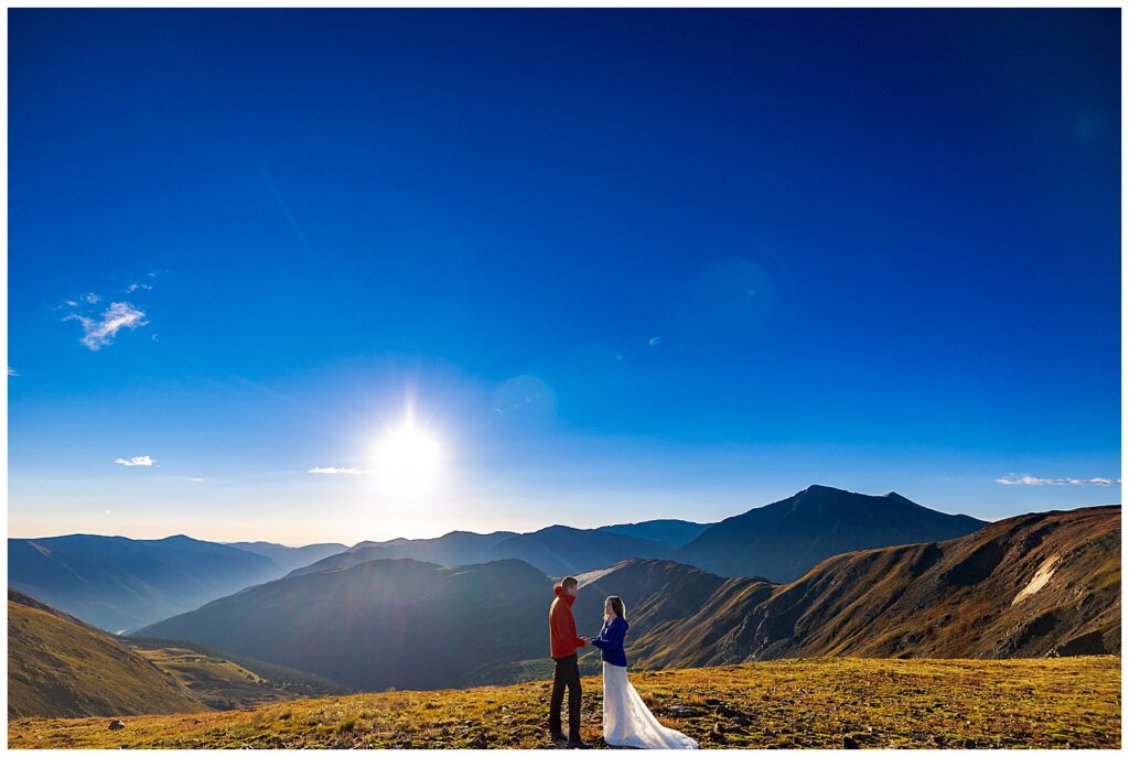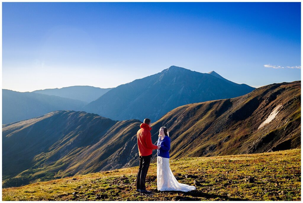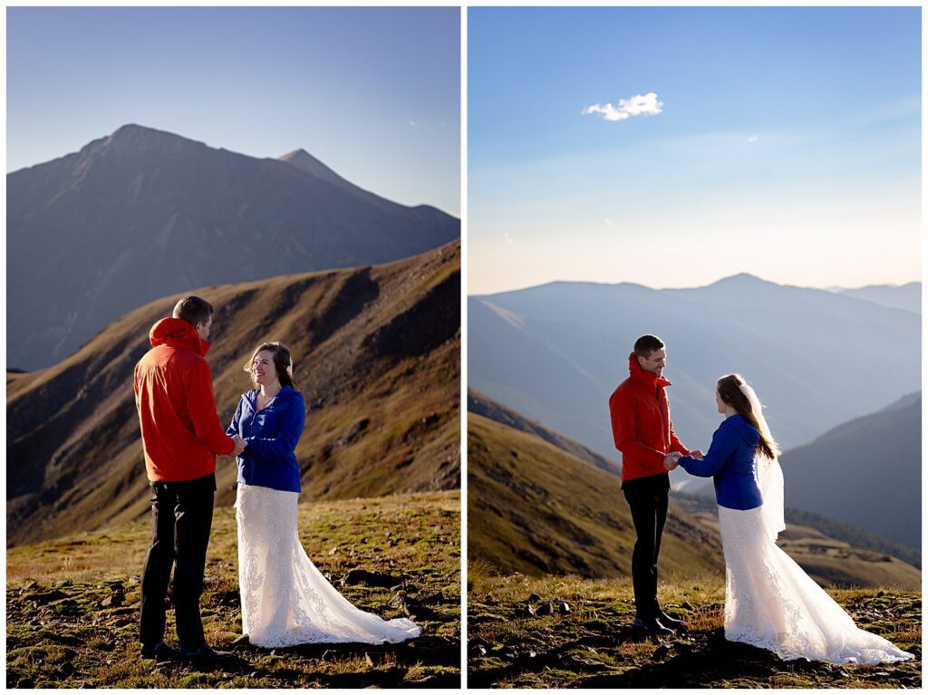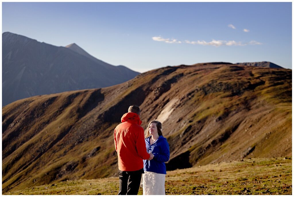 We spent the next hour or so for portraits, taking breaks between spots to warm up. Just before heading down to meet their family and friends at Pass Lake, Jenna and James took a few moments to say personal vows to one another in private overlooking out onto Torrey’s peak.