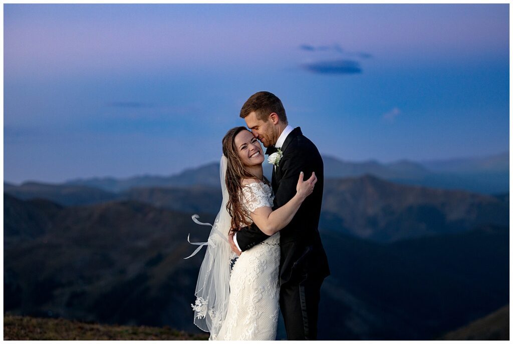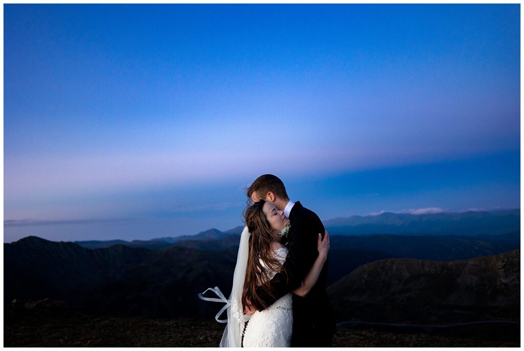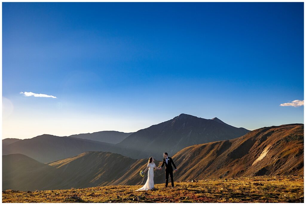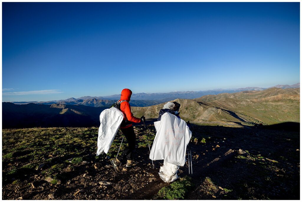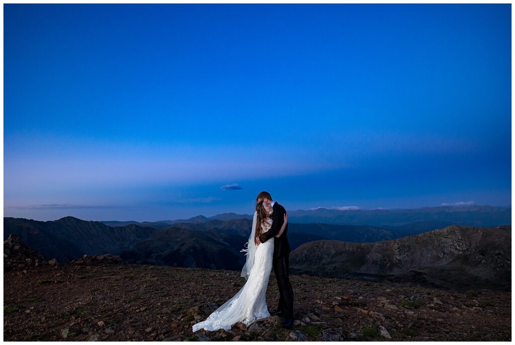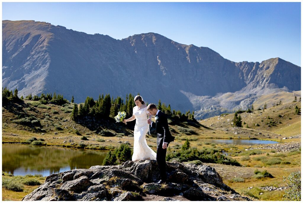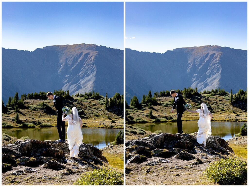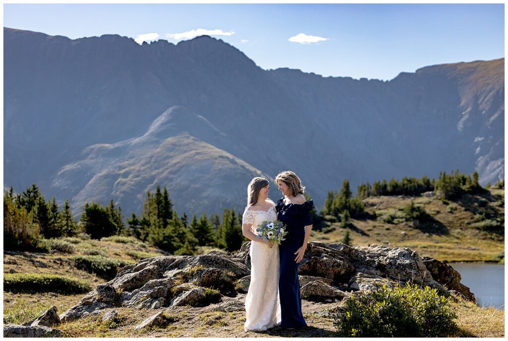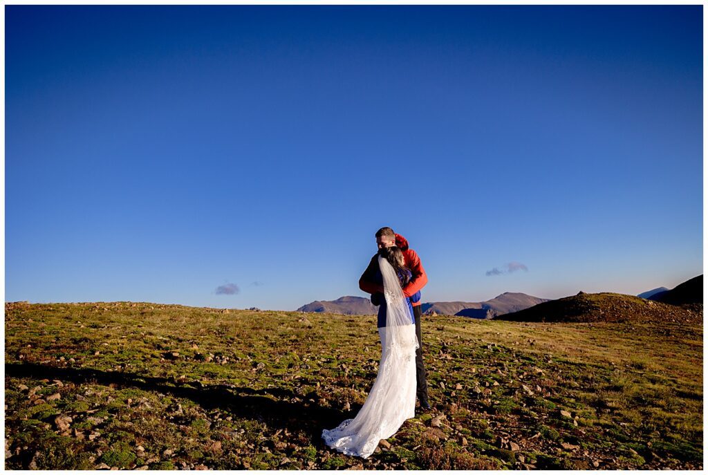 We spent the next hour or so for portraits, taking breaks between spots to warm up. Just before heading down to meet their family and friends at Pass Lake, Jenna and James took a few moments to say personal vows to one another in private overlooking out onto Torrey’s peak.