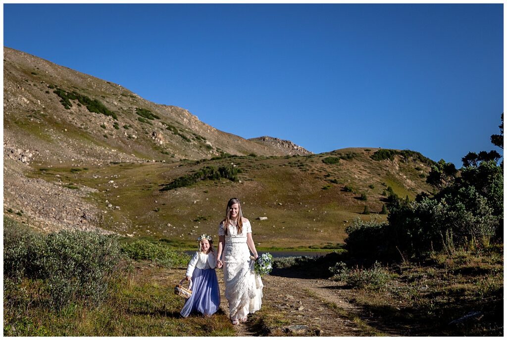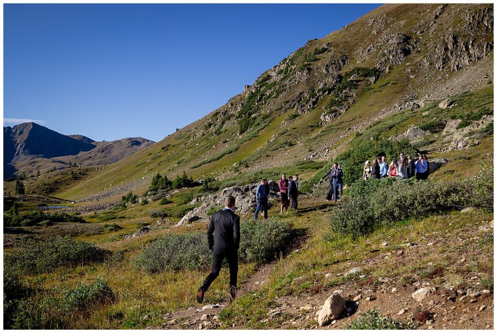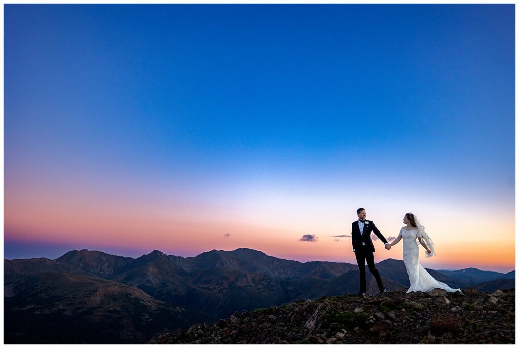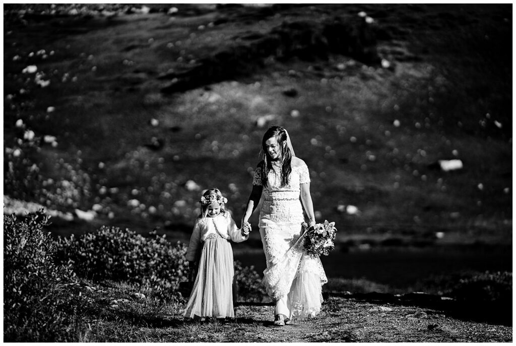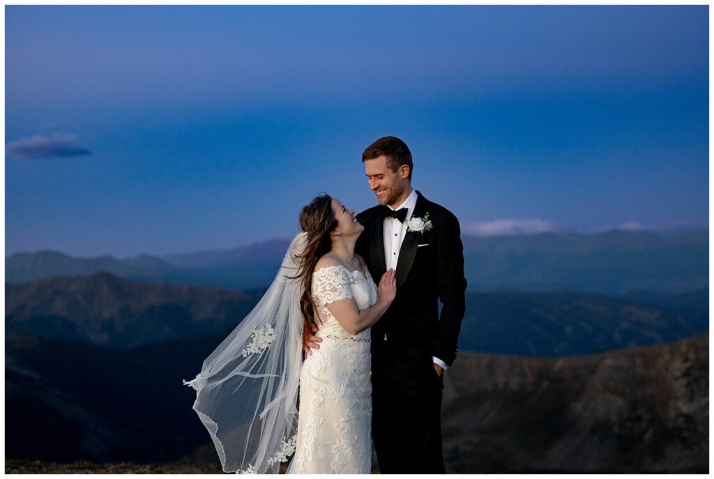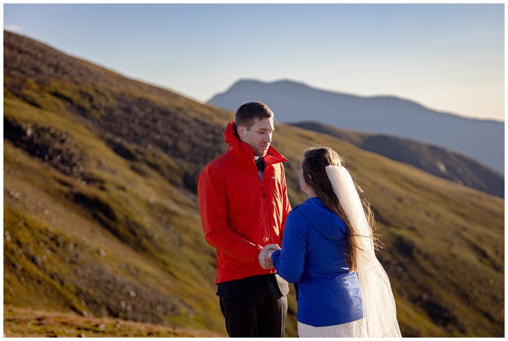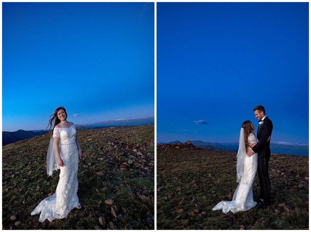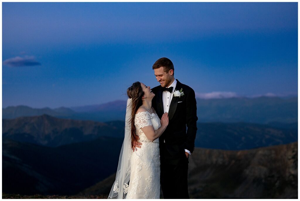 We spent the next hour or so for portraits, taking breaks between spots to warm up. Just before heading down to meet their family and friends at Pass Lake, Jenna and James took a few moments to say personal vows to one another in private overlooking out onto Torrey’s peak.