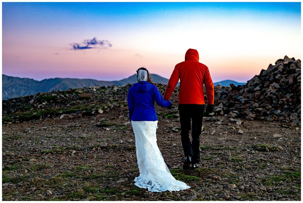 The night before we were going to meet for their sunrise hiking elopement, we did a last minute weather check to see a complete 180º from decent weather to a storm with lightening starting at 8am. For those outside of Colorado, afternoon thunderstorms are certainly common during our summers, but storms beginning that early in the morning are pretty rare. As a safety precaution (and let’s be honest, hiking to wed in the rain would not be a pleasant experience in general) – we went ahead and switched from Thursday to Friday.