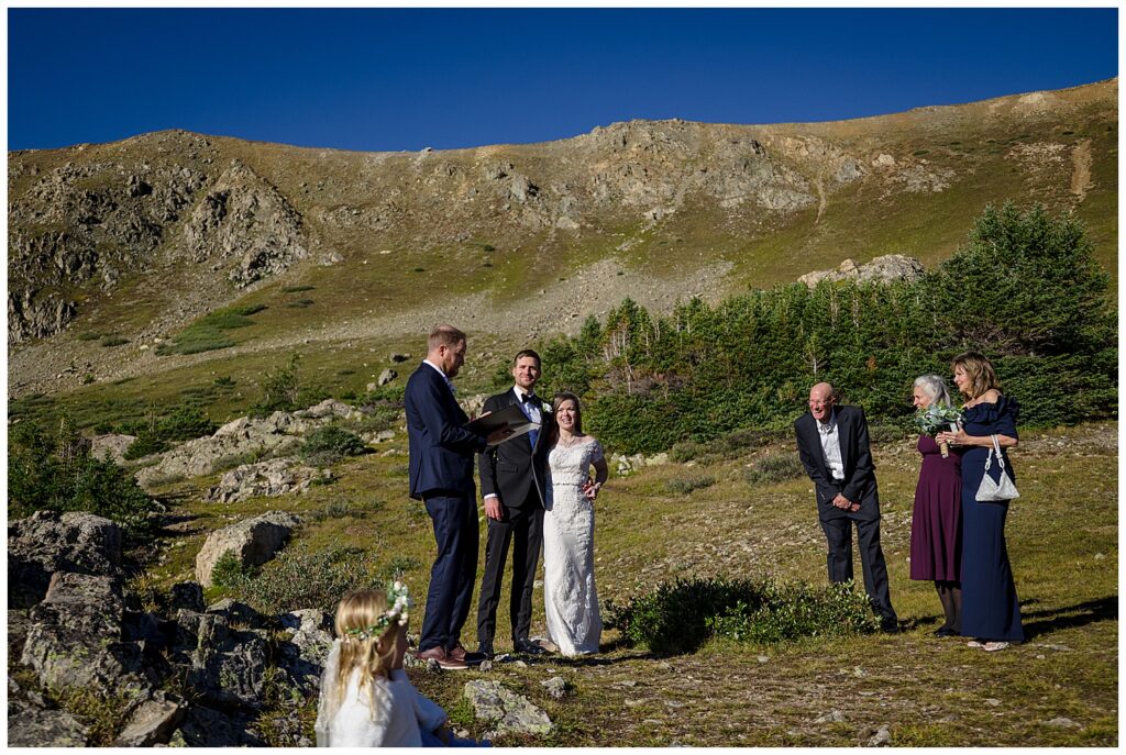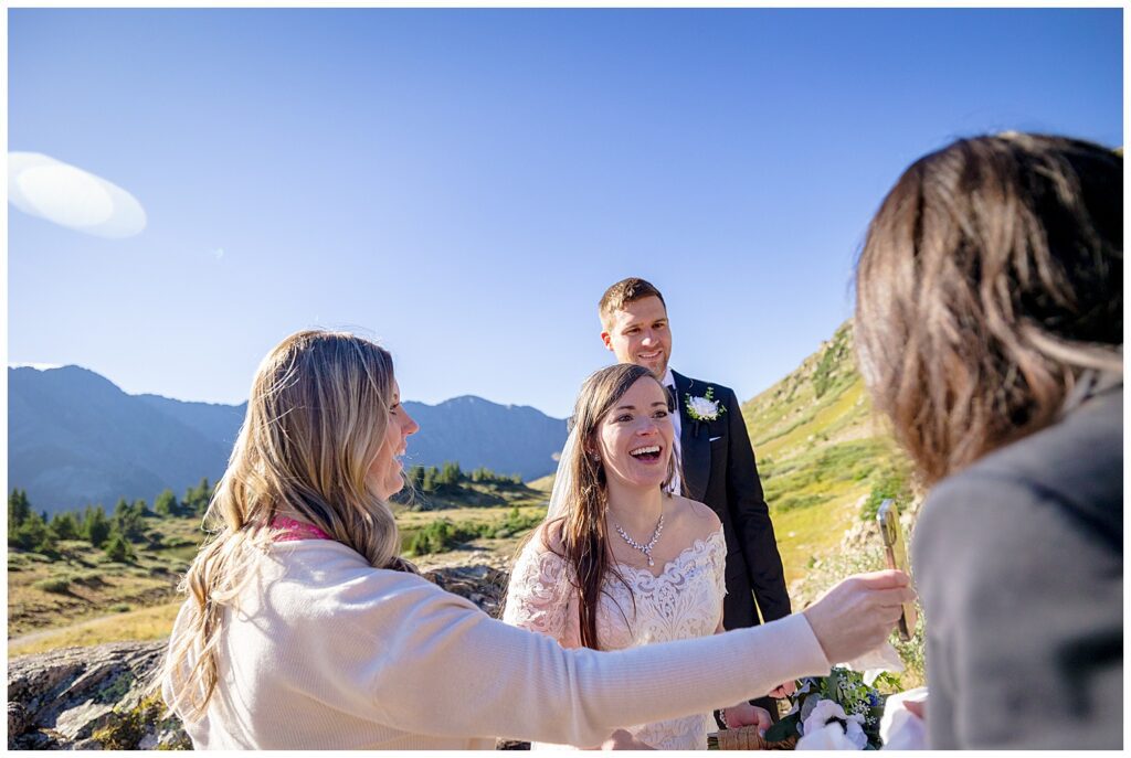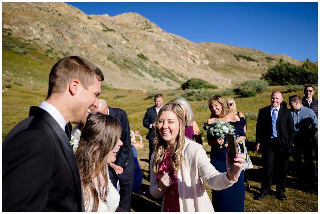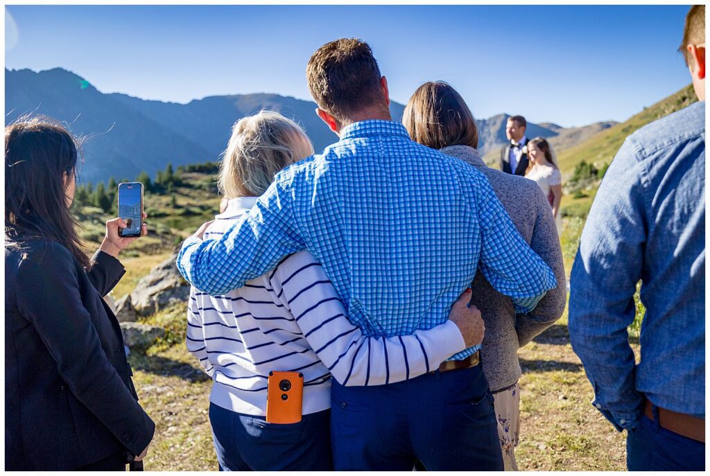 One of the best things about Loveland Pass is the amazing accessibility the road provides. We were able to have both of their families, including parents and children, in attendance. Unfortunately, Jenna’s father was undergoing chemotherapy out of state and was unable to be in physical attendance – however, there is enough cell phone service on the pass that he was able to be FaceTimed into the entire ceremony (which really brought on all the emotions for all in attendance).