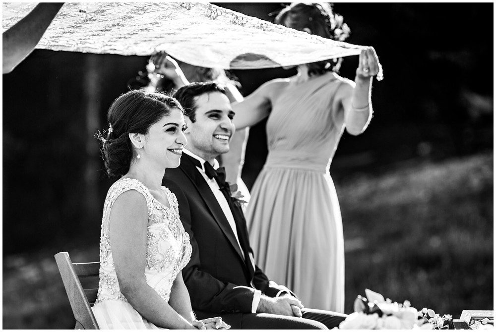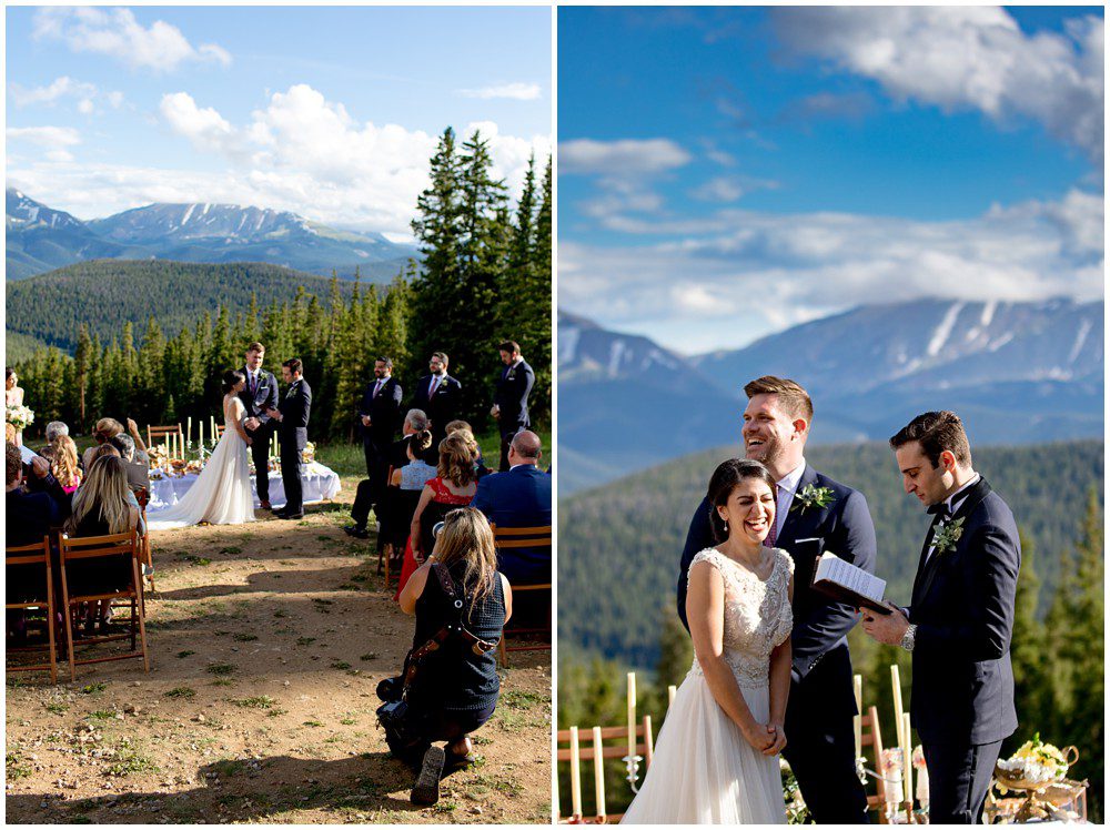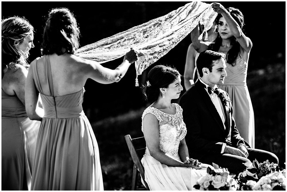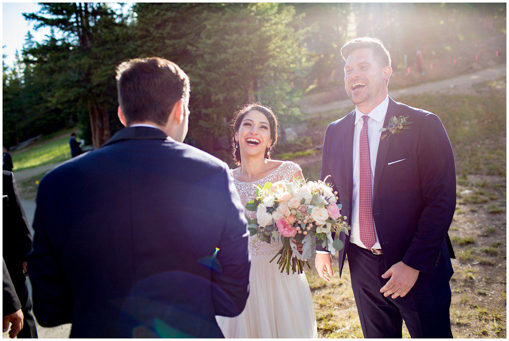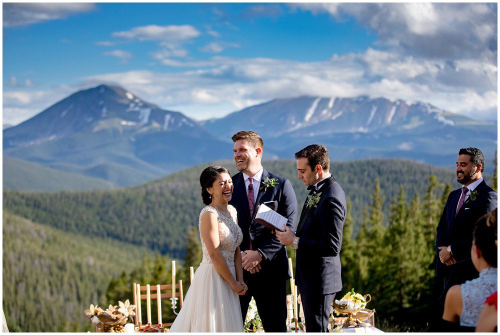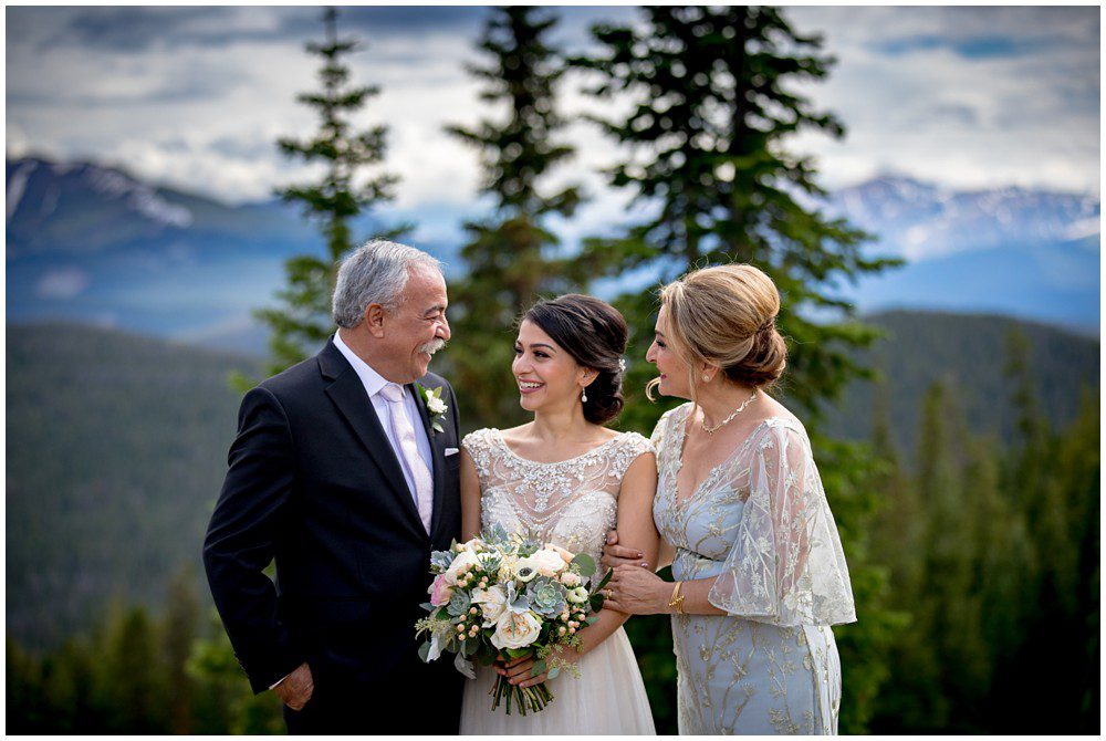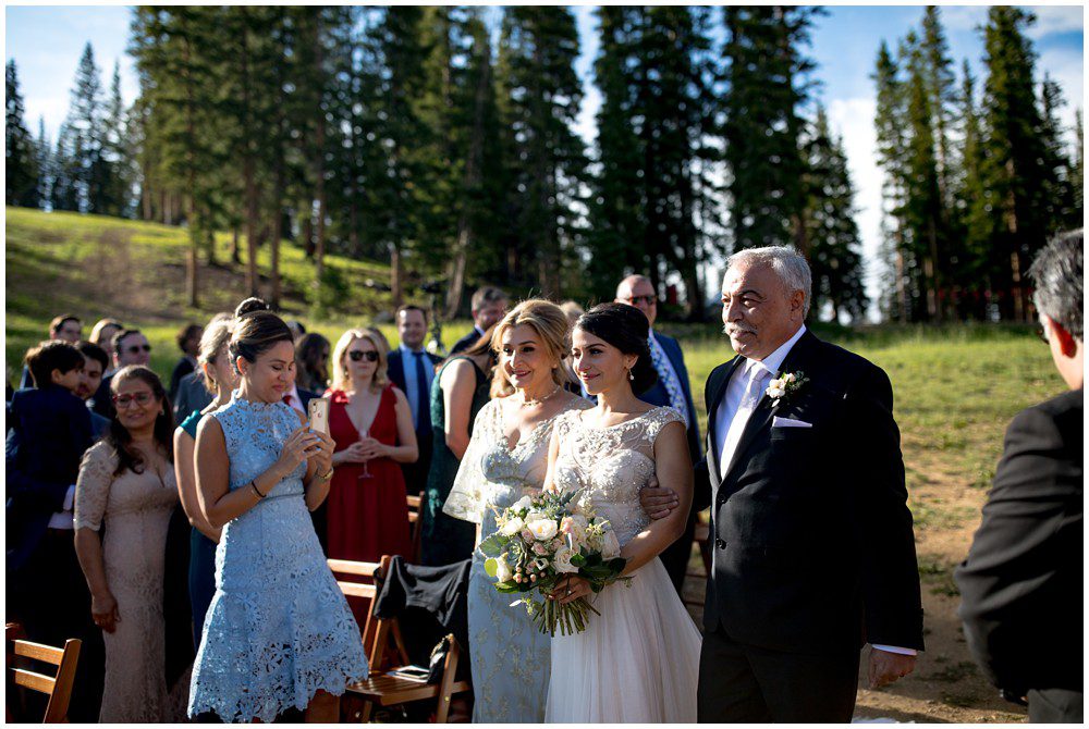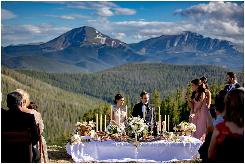 Fast forward to this past July, and it was time for their Persian and American fusion wedding at Timber Ridge Lodge in Keystone. When Pooneh and I first spoke on the phone and she told me about all the amazing traditions that they would be incorporating into their wedding, I was giddy with excitement. Witnessing cultural wedding traditions is one of my favorite things about my job. I love to be invited to partake in all the unique ways humans around the world celebrate the union of two people. For their mountain top ceremony atop the North Peak, they first began with a traditional American ceremony. The wedding site faces both the stunning Gore and Tenmile mountain ranges – with Mount Guyot and Bald Mountain booming up in the background. Once it was time to begin the Persian ceremony, Pooneh and John made their way behind the Sofreh to be showered with all things sweet. I love the tradition of bestowing the newlywed couple with sweet items, to signify a “sweet start”. Another portion of the wedding that I loved was when Pooneh was asked if she would take John – to which she waited to be asked three times and finally responded BELLA, BELLA, BELLA!! I think anytime anyone wants something from me, I’m now going to respond bella, bella, bella.