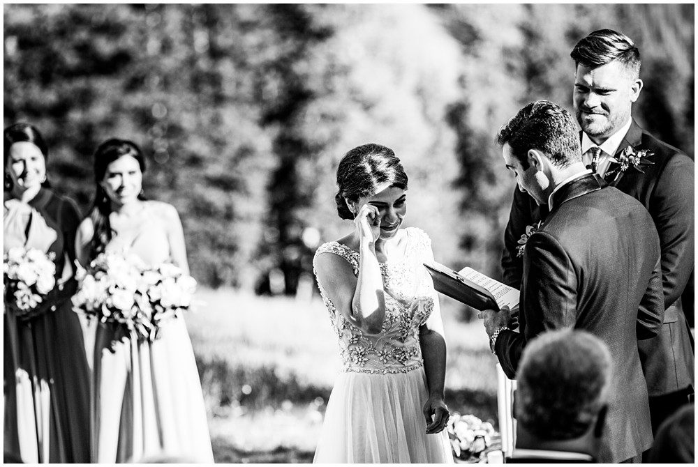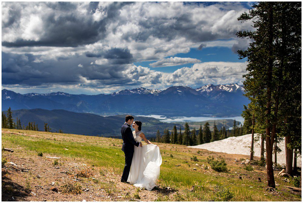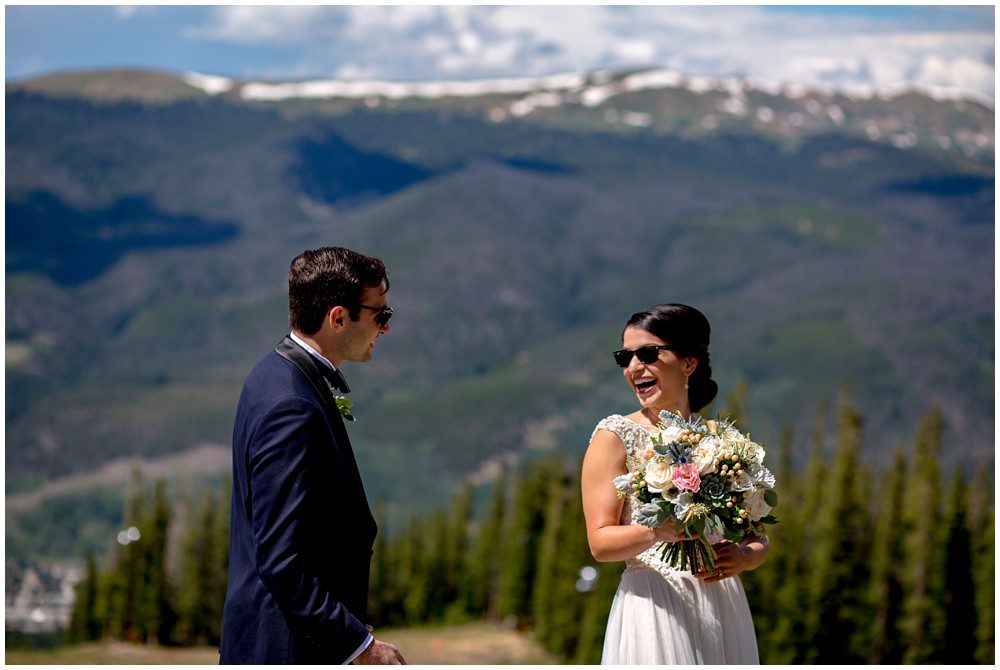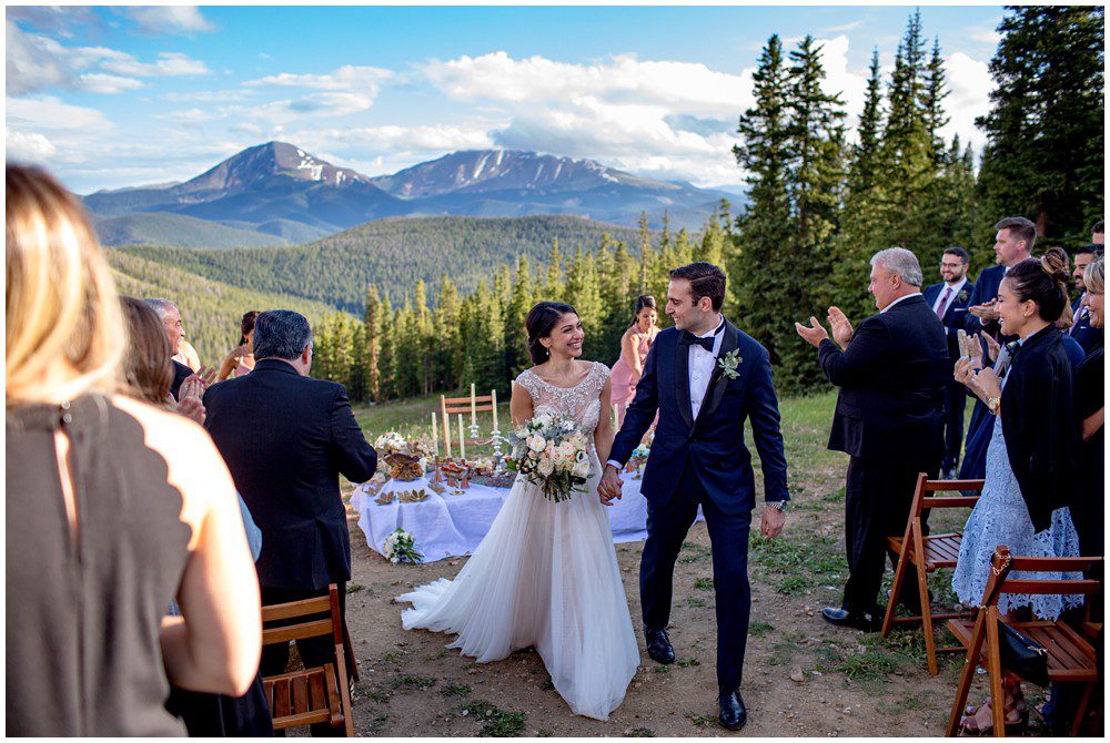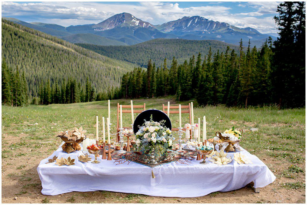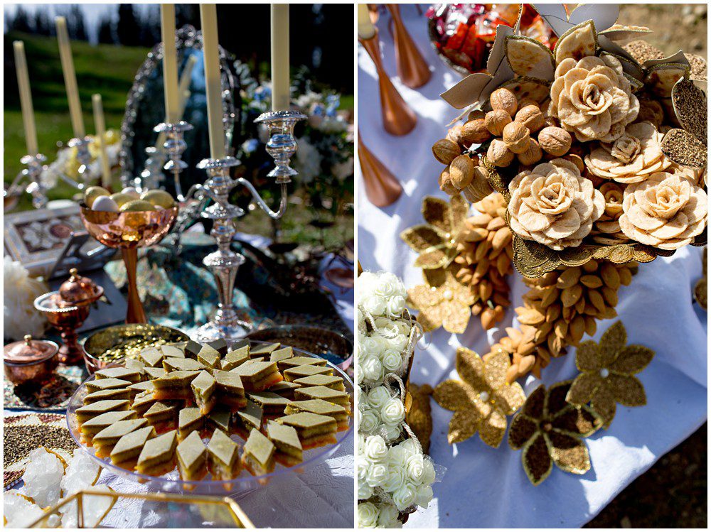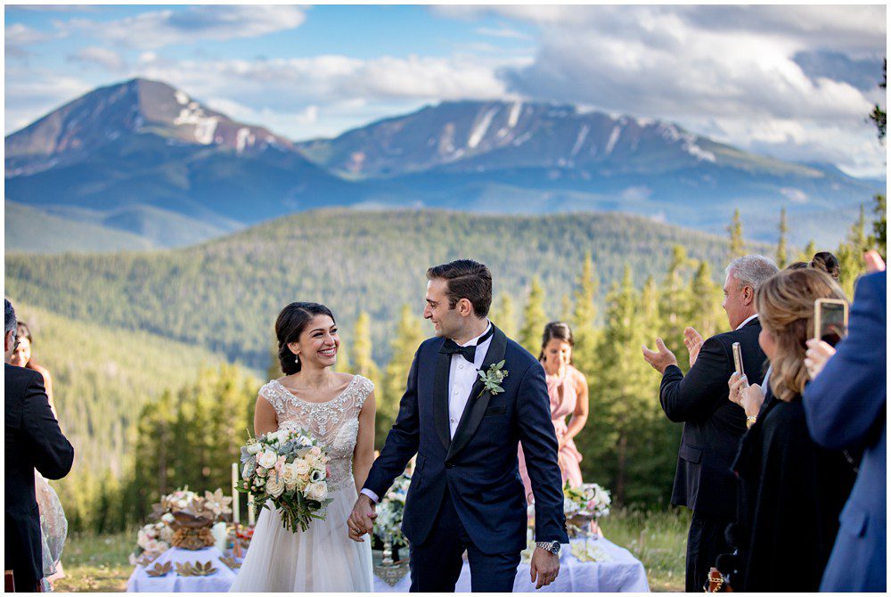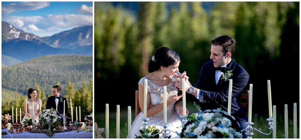 Fast forward to this past July, and it was time for their Persian and American fusion wedding at Timber Ridge Lodge in Keystone. When Pooneh and I first spoke on the phone and she told me about all the amazing traditions that they would be incorporating into their wedding, I was giddy with excitement. Witnessing cultural wedding traditions is one of my favorite things about my job. I love to be invited to partake in all the unique ways humans around the world celebrate the union of two people. For their mountain top ceremony atop the North Peak, they first began with a traditional American ceremony. The wedding site faces both the stunning Gore and Tenmile mountain ranges – with Mount Guyot and Bald Mountain booming up in the background. Once it was time to begin the Persian ceremony, Pooneh and John made their way behind the Sofreh to be showered with all things sweet. I love the tradition of bestowing the newlywed couple with sweet items, to signify a “sweet start”. Another portion of the wedding that I loved was when Pooneh was asked if she would take John – to which she waited to be asked three times and finally responded BELLA, BELLA, BELLA!! I think anytime anyone wants something from me, I’m now going to respond bella, bella, bella.