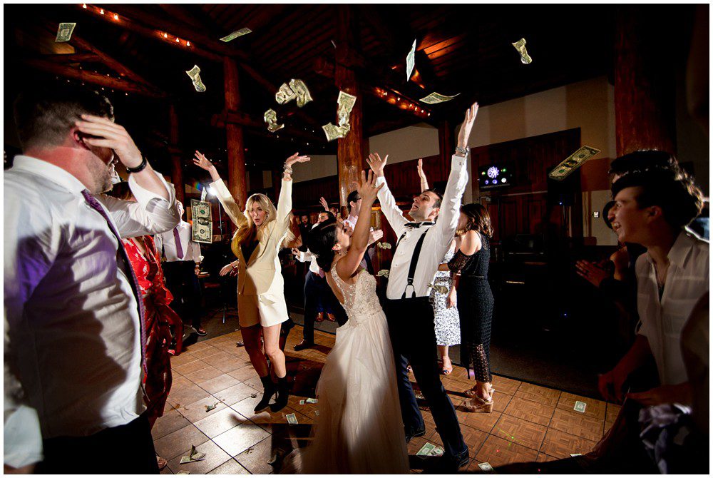For the ceremony, we all moved into the Lodge at Timber Ridge, which is only a hop, skip, and a jump away from the ceremony site. It’s quite nice to just walk a few yards and be at the reception area (especially after two gondola rides to get there 😁 ). During the planning process, I got an email from Pooneh to be ready for the “Knife Dance”. Without any previous context or Persian wedding experience, I was quite intrigued by what that meant. I made sure to ask for more details, as my head was spinning with all the possibilities of what that could mean! Turns out, it’s super awesome and involves the groom throwing money at the bridesmaids who are holding the cake knife hostage. Speaking of money… it was thrown into the air quite a bit at the reception 😝. Literally. It was such a fun reception, as there was always something awesome happening in every corner of the dance floor.