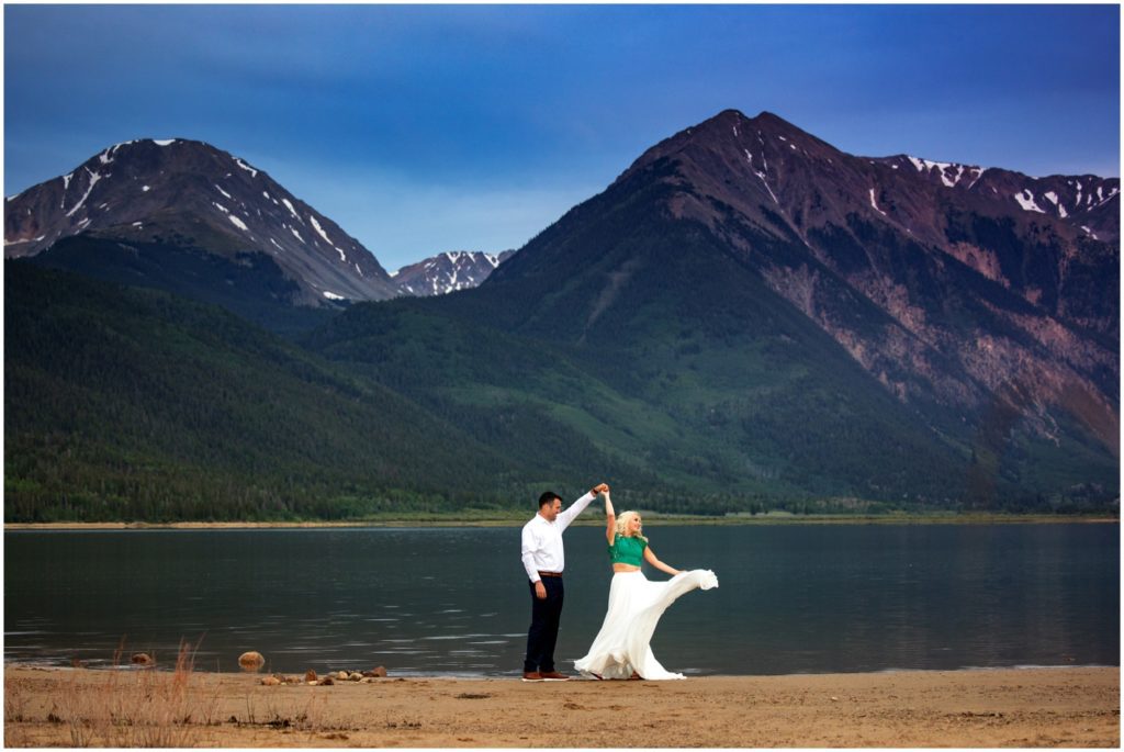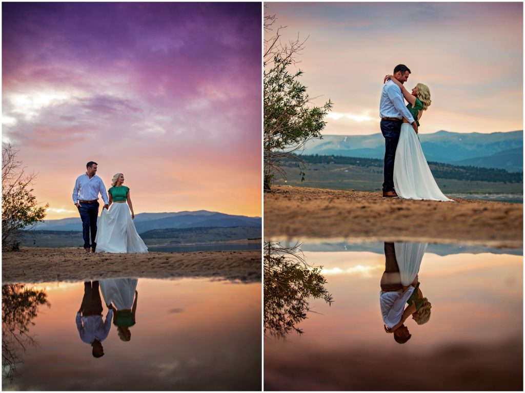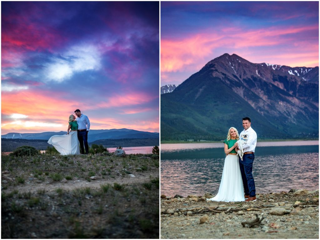 Shannon and Marshall met me up at Twin Lakes – an amazing place just outside of Leadville, Colorado – for their sunrise engagement. Every time I’ve been to these amazing lakes, the sky has put on an amazing show. As the sun tips up over the horizon, you get panoramic skies with mountains in the background. Most of the surrounding peaks in the area are at 13,000 feet or above – including Colorado’s largest peak Mt. Elbert towering at 14,439′.