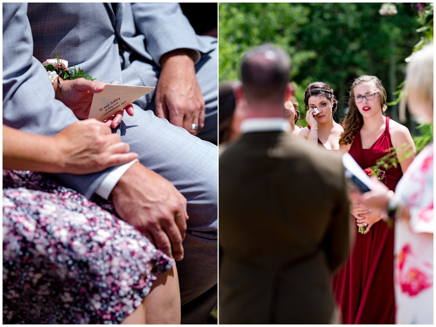 On June 28, 2018 I headed out West alongside the St. Vrain Canyon (I’m sure blasting either some Beatles or 90s grunge) to photograph Ashley and TCs wedding. I also knew that I’d get to see Brad and Jessica, who had just moved back to the states from Copenhagen, as Brad would now be TC’s best man. We started getting ready and were able to take some family and bridal portraits prior to the ceremony – including a few emotional first looks with Ashley’s dad and step-dad. I would say that was the beginning to all of the emotion of the day – which there was no shortage of. Everyone was SO genuinely happy, and full of loving tears.