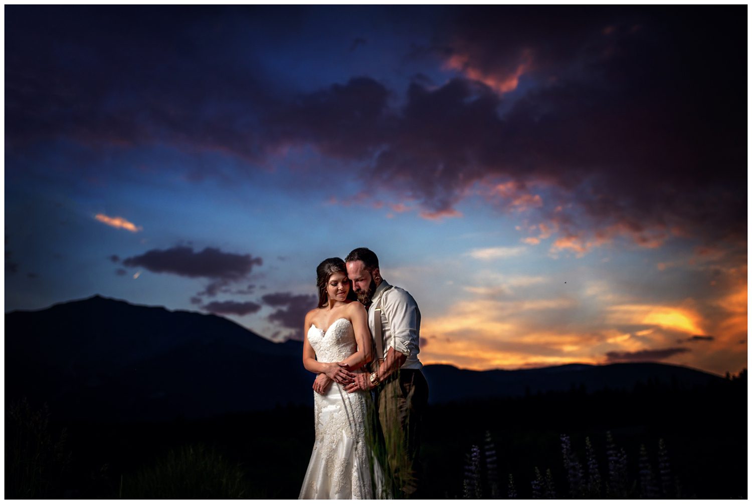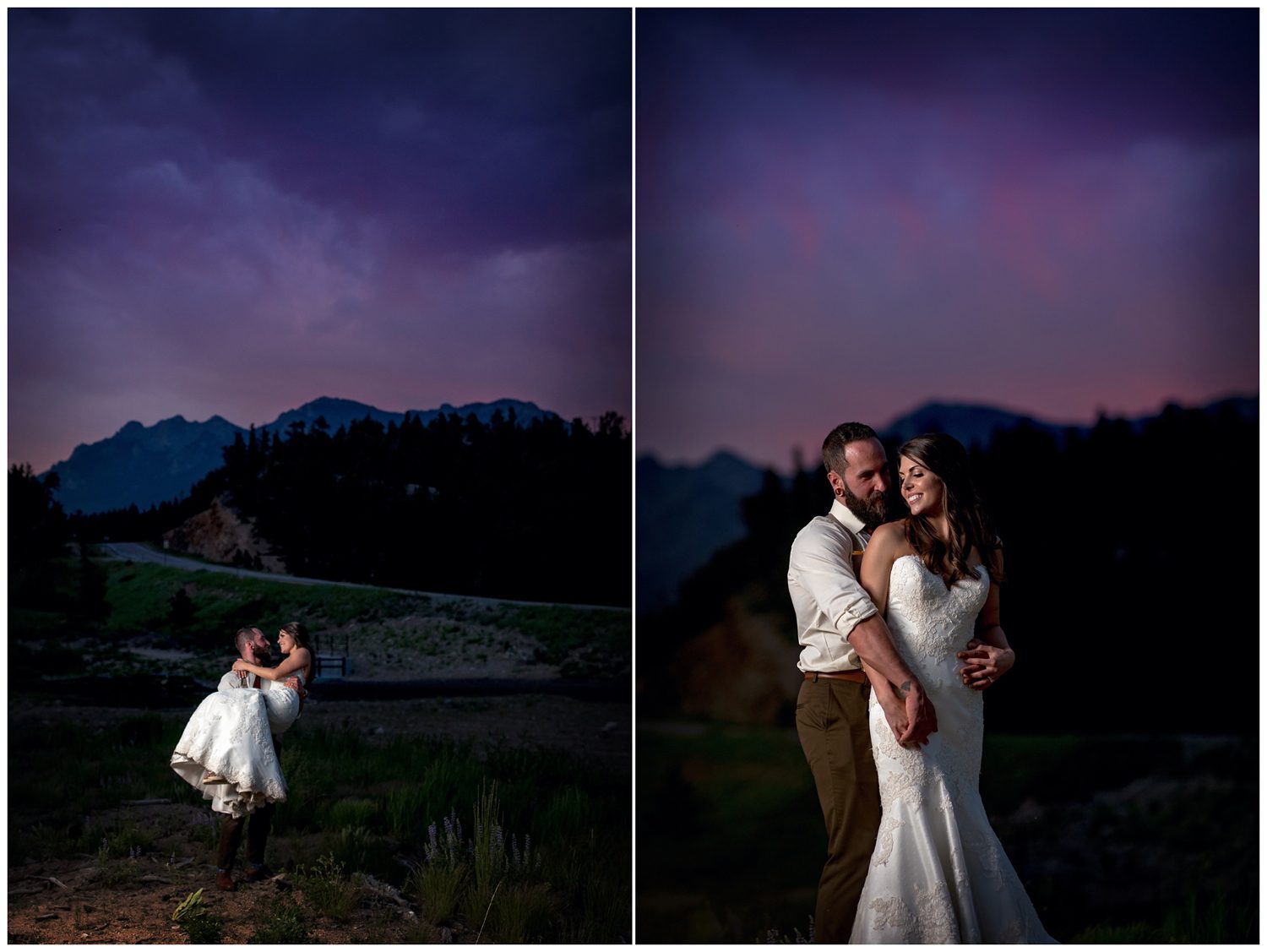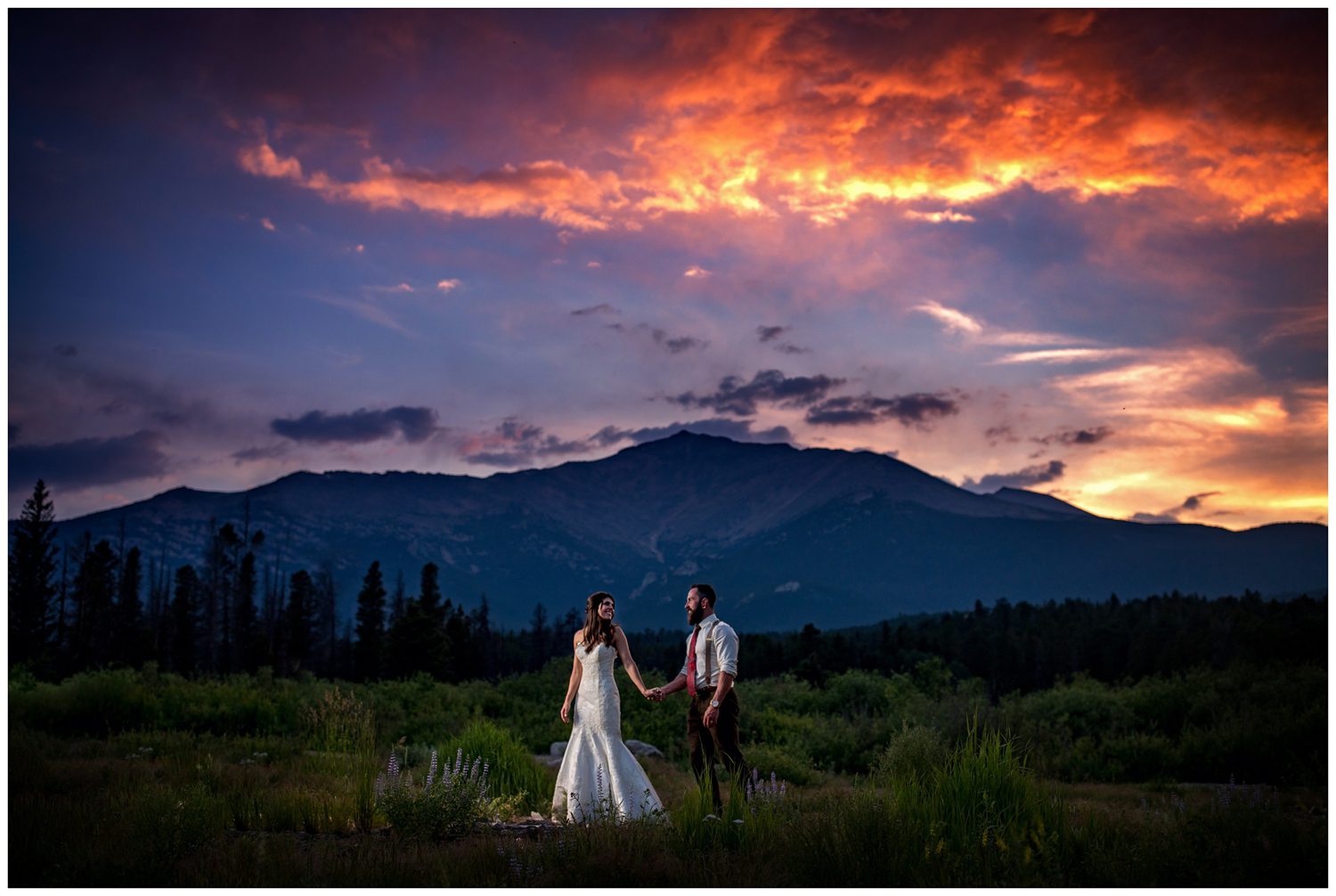 Once we began photographing their couple’s portraits, I looked down at my arm to notice it was incredibly orange. I’m all about light (and I have ZERO poker face when it comes to yelling out “OMG THAT LIGHT IS SO PRETTY”), so noticing the shift in color was somewhat odd for 3:00 in the afternoon. We looked up into the sky and noticed that a huge smoke plume had formed – it turns out that a large wildfire near Grand Lake (just on the other side of the Continental Divide) had started that day. It makes me incredibly sad to know that Colorado is on fire, but man oh man does smoke make for some amazing lighting.