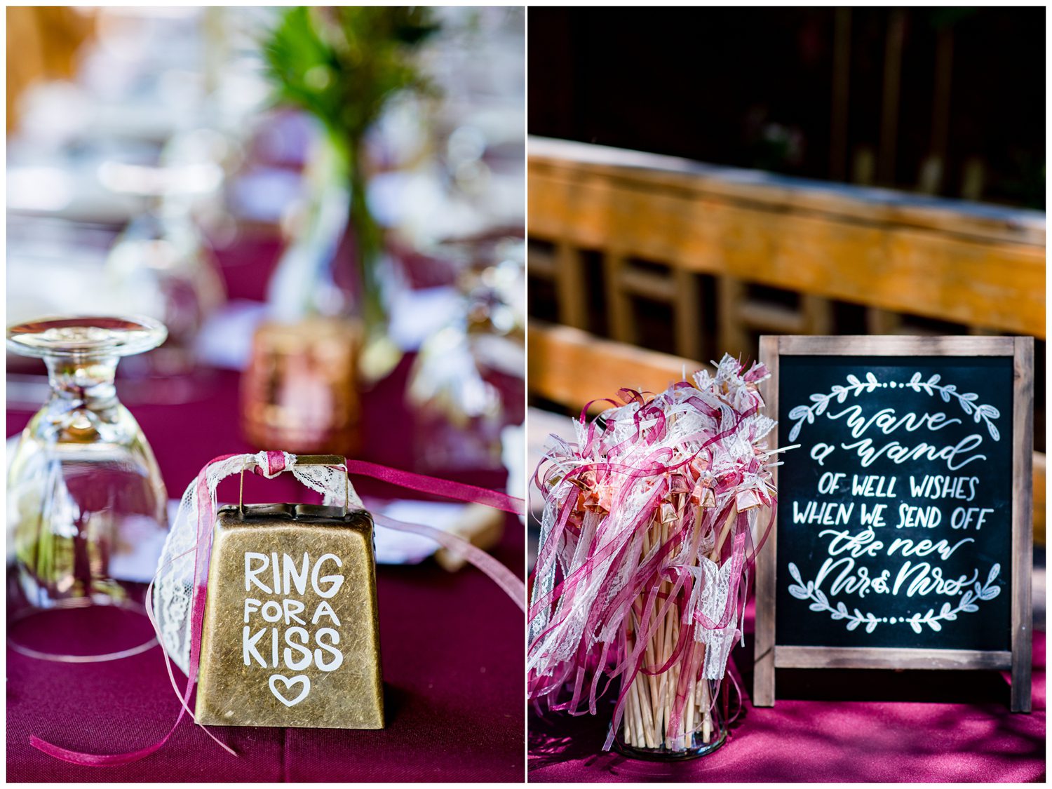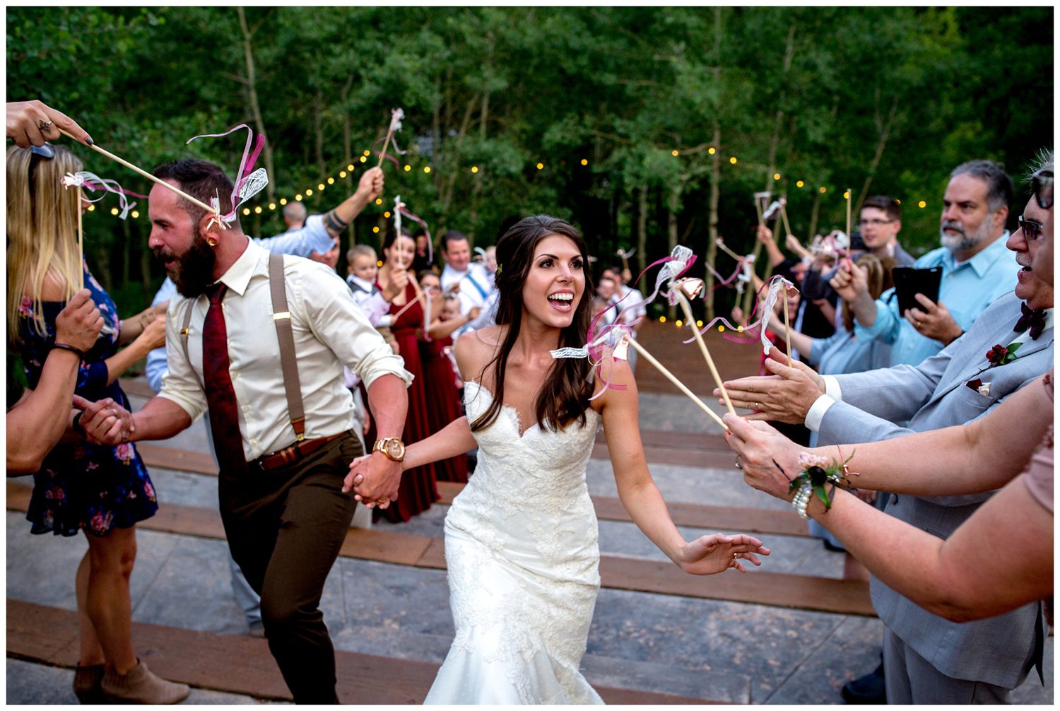 For their reception, Ashley and TC decided to host their entire event outside. Which I am a HUGE fan of, for multiple reasons. The lighting is always fantastic outside, as long as it’s decent weather everyone enjoys being outdoors, and YOU GET TO HANG OUT OUTSIDE. Outside is where it’s at. 😃 As the night progressed, some fantastic dancing began to break out – including TC and Ashley dancing out on the rock near the riverside. Due to the fire bans (which clearly are a good thing seeing that a wildfire broke out already), a sparkler exit was a no go – so a “bell and ribbon” exit it was. I still have my ribbon in my office – I love being able to take home a small piece of each wedding I photograph if it’s possible.