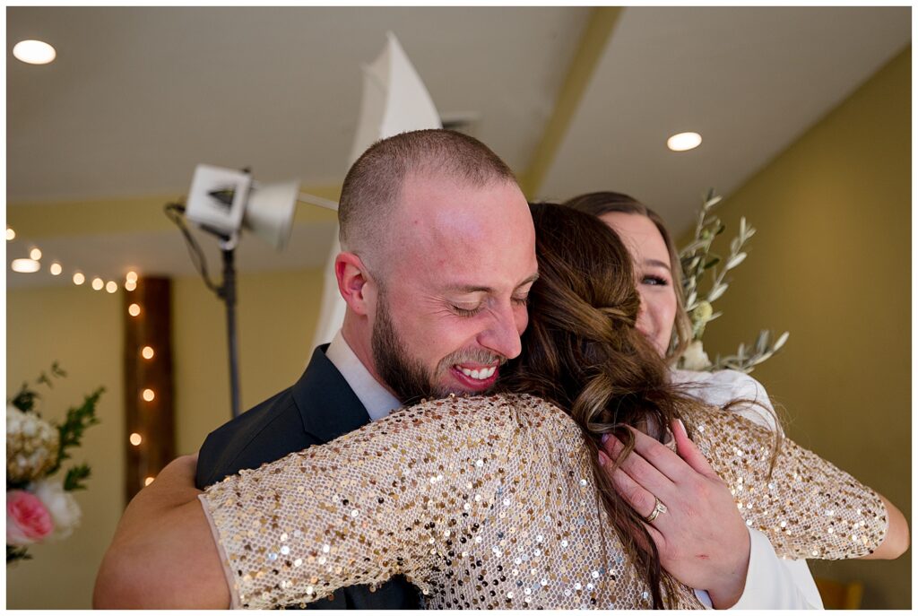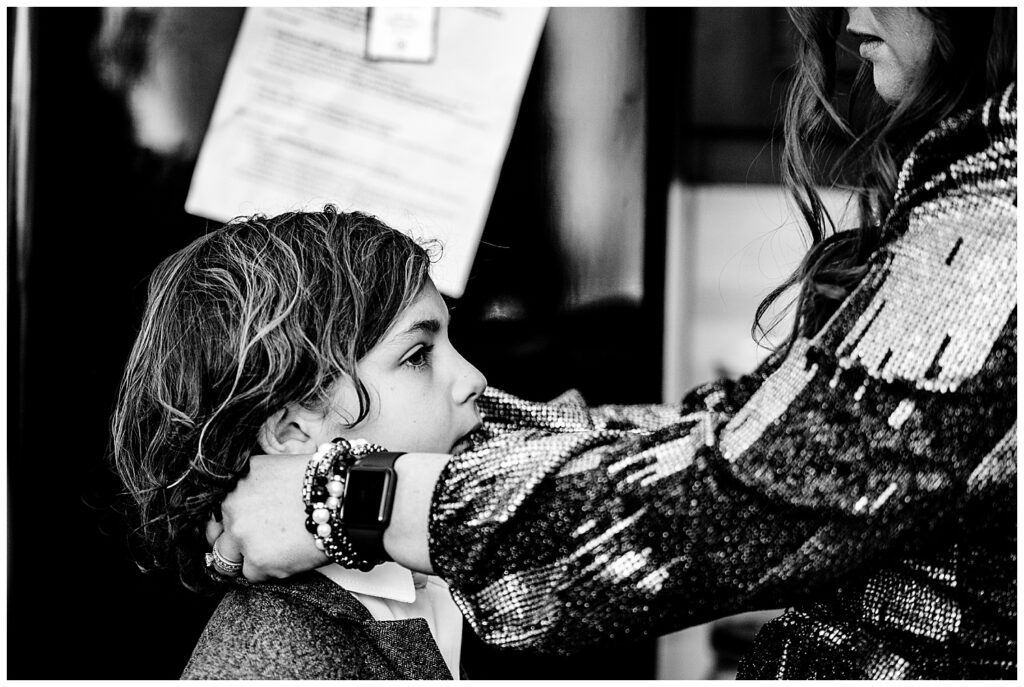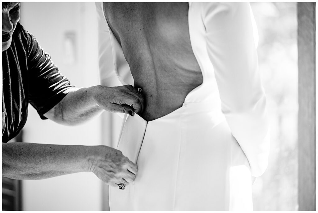 Kelly and Jacob both got ready surrounded by their family and friends in AirBnBs located just a few minutes from their venue. One of my favorite parts about larger getting ready rooms and having all your people join you during that time is the ability to capture some really great storytelling moments. I’m sure that I’ve said it at every wedding that I’ve photographed – but the best way to get amazing (and truly candid) photographs is the “I’m not here” mantra. Just pretend I’m not shoving a giant camera into your face, starting when you’re in your pajamas ;). But in all seriousness, enjoy your time getting ready with your people – whomever they may be. Take photos of one another, laugh, help eachother get dressed. It’s some great time spent with one another.
