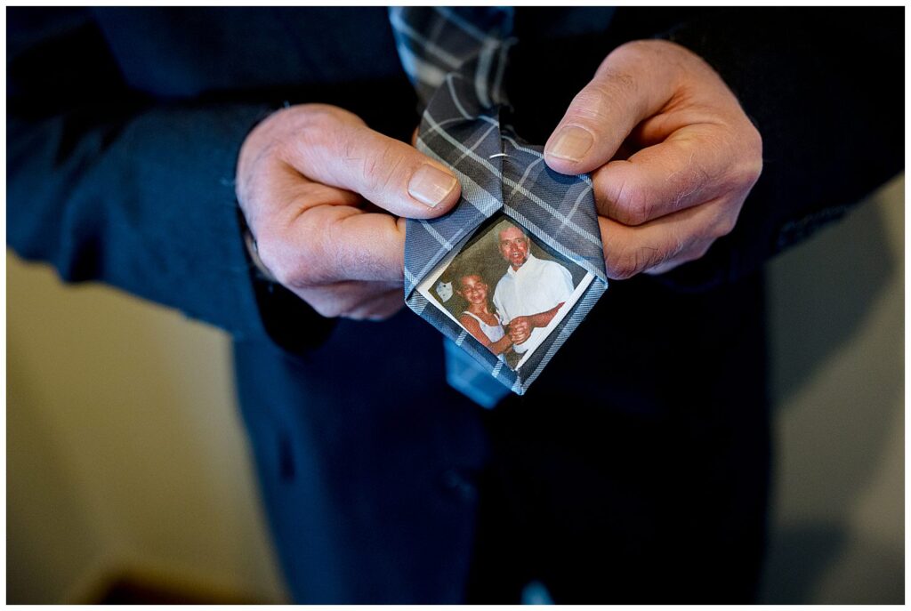 Once Michelle put on her stunning gown (I absolutely LOVE the stripes) and the gentlemen donned their dapper suits – we headed to the ceremony deck for a few first looks. Michelle wanted to be sure and see her dad, step-dad, and brother before the ceremony as well as her soon-to-be husband.