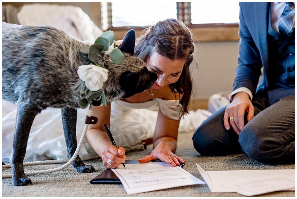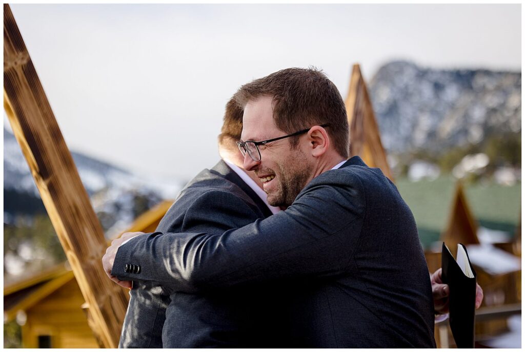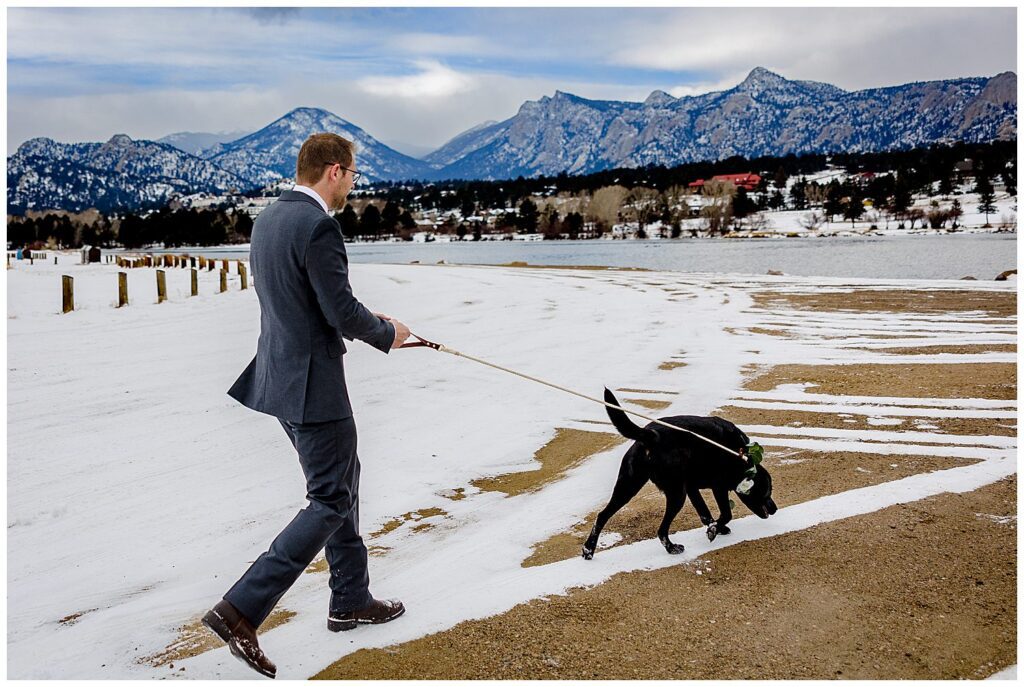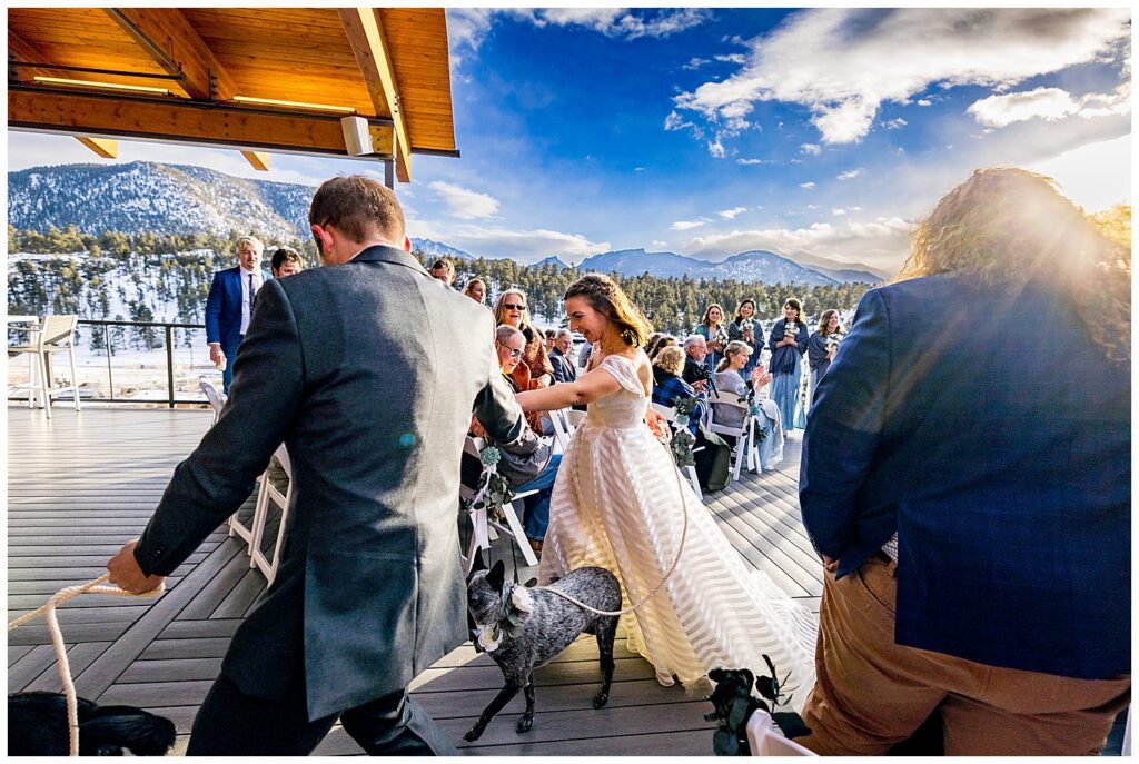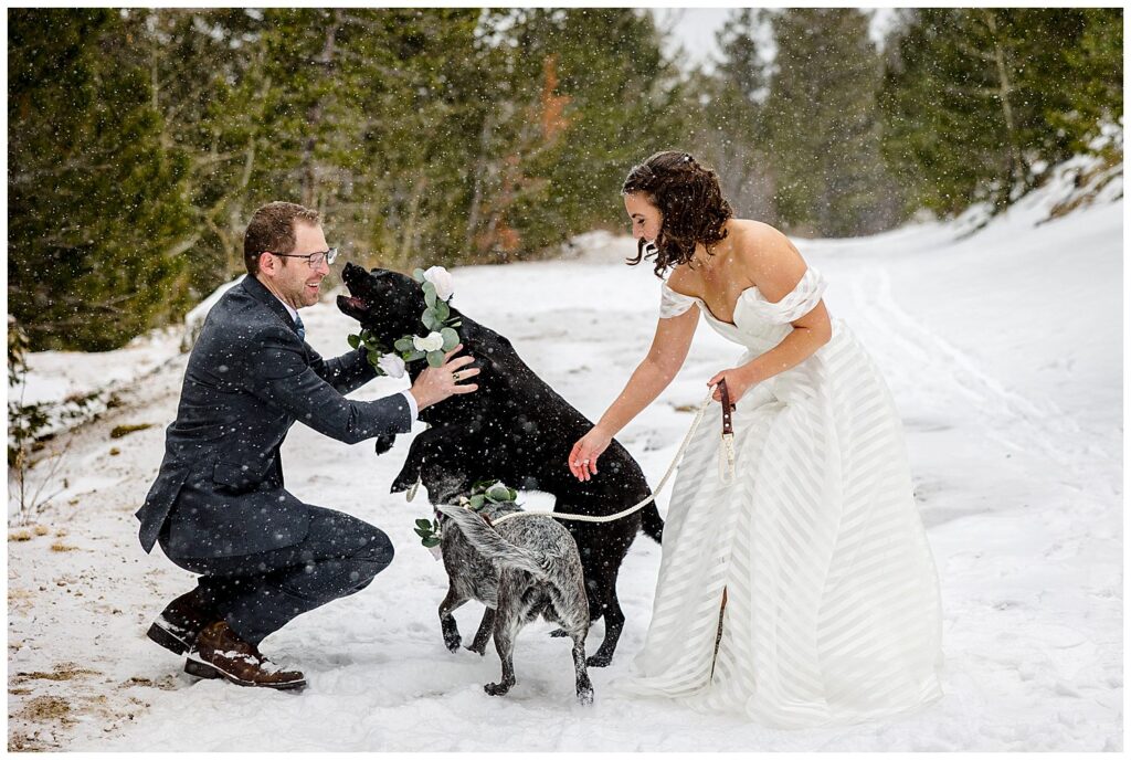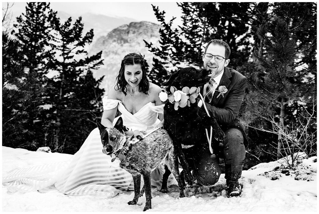Michelle and Scott, along with their two puppers, packed up and drove from Michigan to Estes Park for their winter wedding at SkyView Fall River Village.