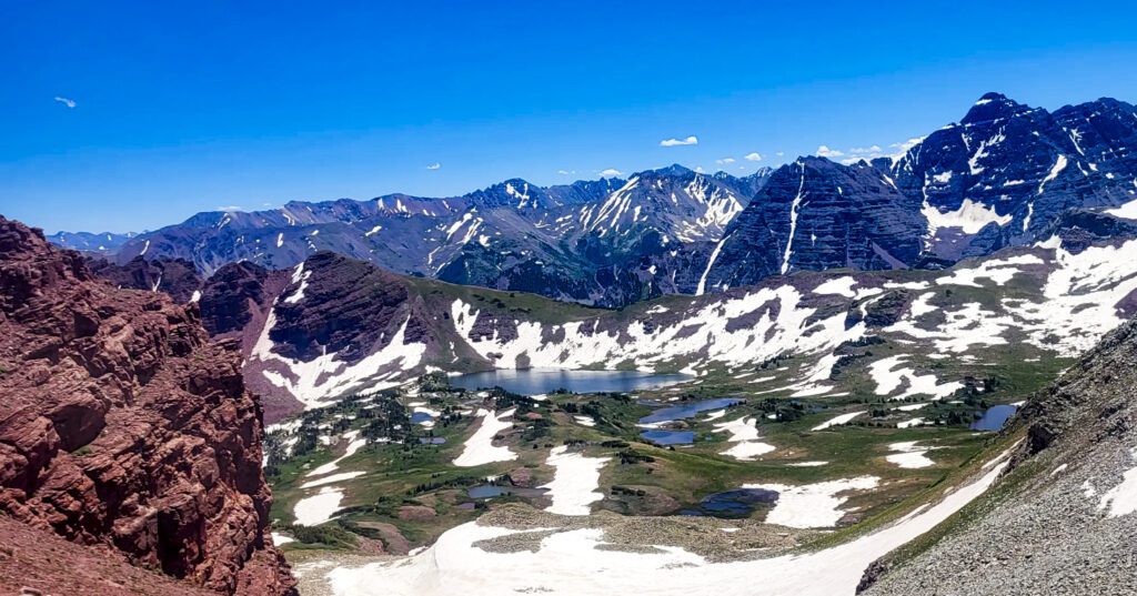 • Both routes to reach Snowmass Lake climb over a pass with spectacular views.