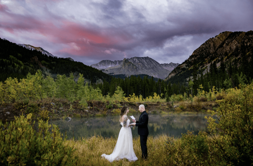 Colorado DOES NOT require a witness or officiant. You can Self-Solemnize, or marry yourselves. As long as you have your marriage certificate and a pen – you’re ready to go! For the location on your marriage license, you can put the physical location (EX: Crater Lake), a description of the locations (EX: A meadow of wildflowers beneath Maroon Peak), or the Coordinates of your ceremony site. Fun Fact: Your dog, cat, or whomever you’d like can sign as a witness. You can also have as may witnesses as you’d like – everyone in attendance can sign if you so desire.