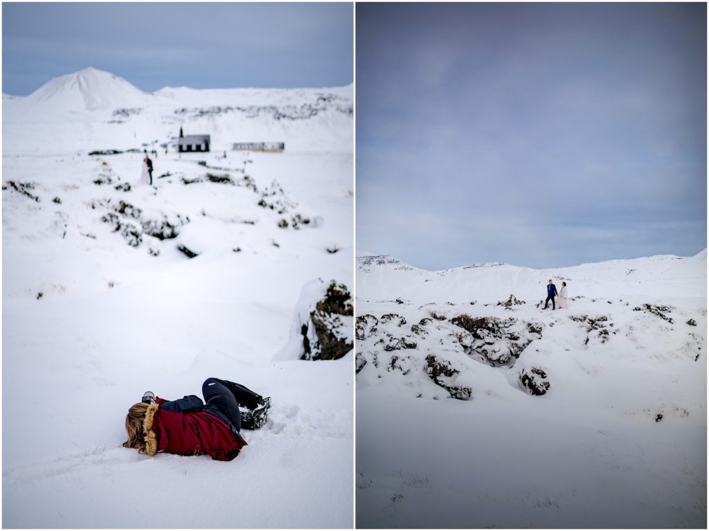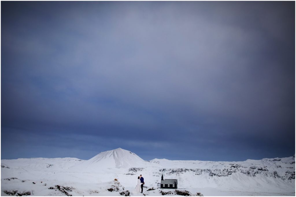 Once Candice and Robert were all dressed and ready, we headed out on the road, around the peninsula towards the tiny, coastal Black Church of Budir. The mountains were blanketed in white, as was all of the lava rock and moss. Untouched powder. Looking out at the white covered landscape was quite magical. As we drove, we all made several comments on how stunning and pristine Iceland during winter is. One of my very favorite sightings was to see Snaefellsjokull (the glacier on the peninsula) booming above the surrounding mountains – completely covered in snow and pure white.