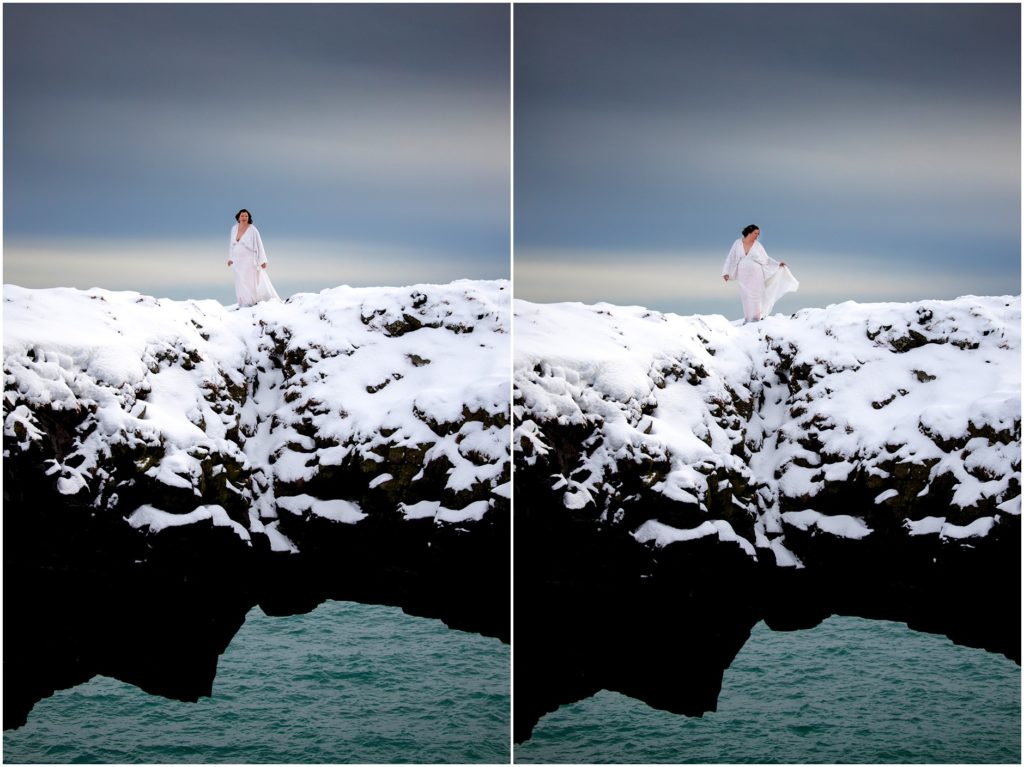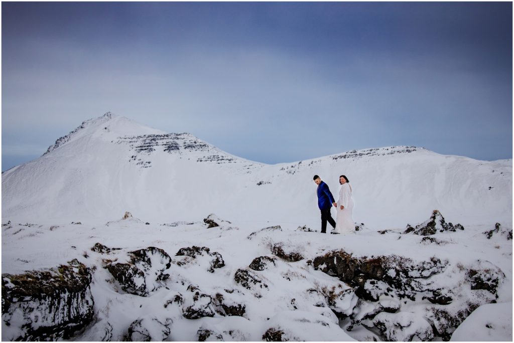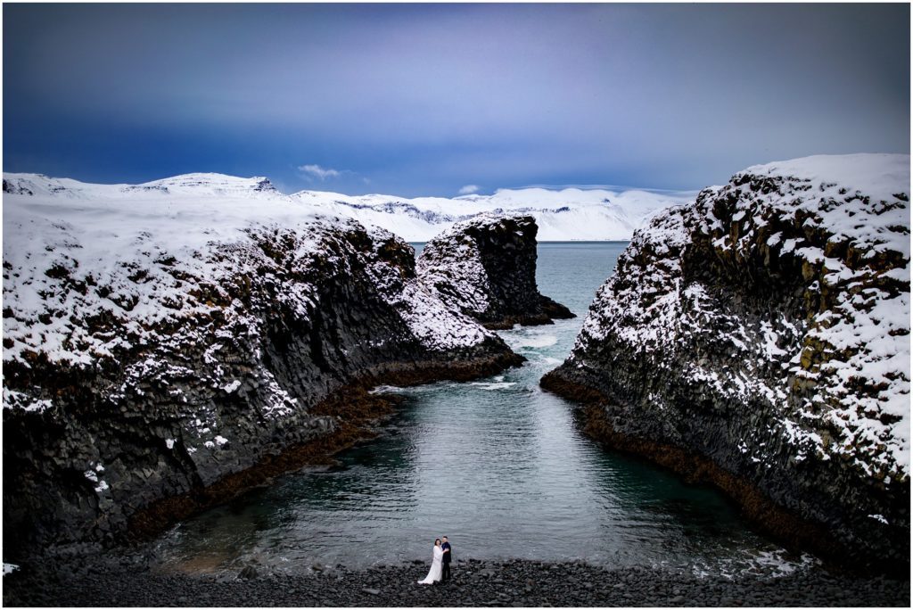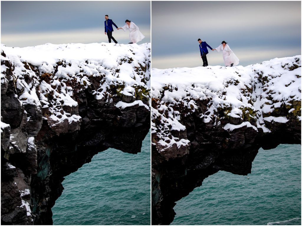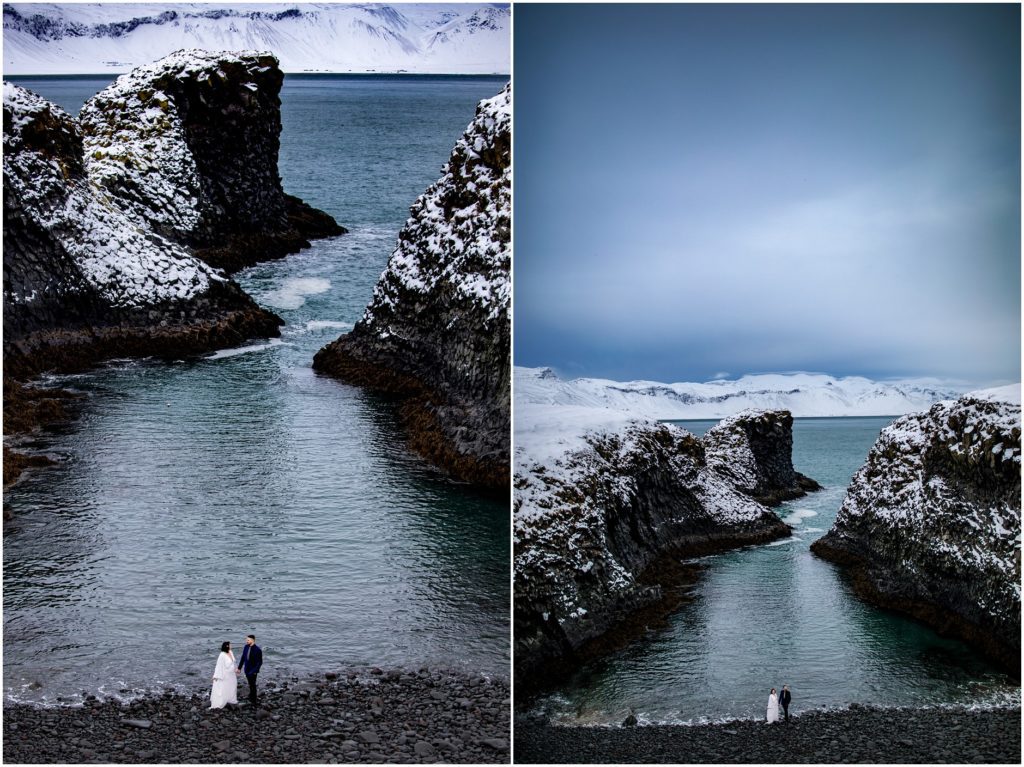 Another amazing thing about Iceland is that it has a draw to the adventurous souls. Candice and Robert are certainly in that category. We found an AMAZING cove along the coast, but the descent down towards the water was, well, not for the faint of heart. Candice and Robert, with microspikes in tow, headed down the steep hill in the name of adventure and photos. As I’m sure you’ll agree, it was WORTH IT!