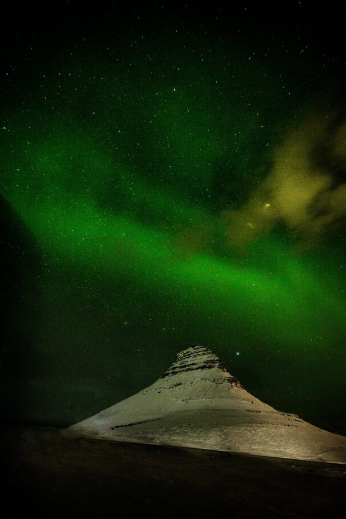 After our fish and chips break, we headed back toward Olafsvik and towards the famous Kirkjufell. When I saw “Church Mountain” in the spring and fall, it was pretty, but nothing compared to the frozen tundra during wintertime. The waterfalls are half frozen, somewhat teal, and beyond stunning.