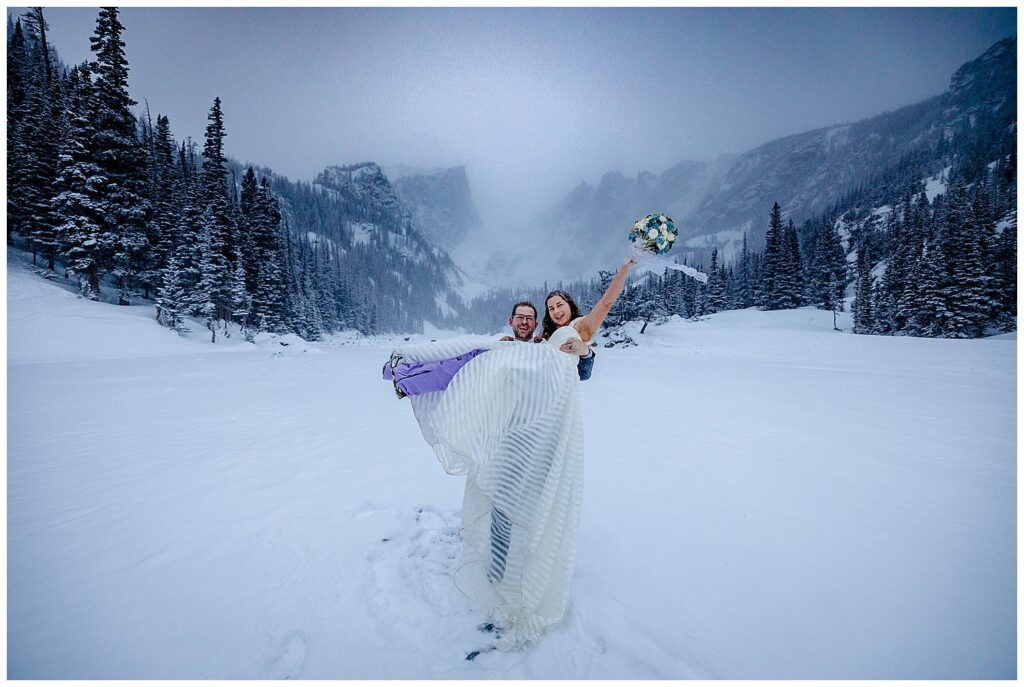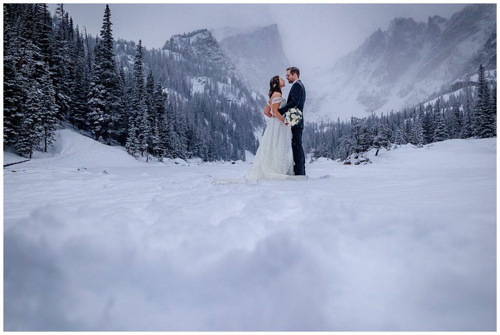 Michelle and Scott | Dream Lake Winter Day After Wedding Portraits