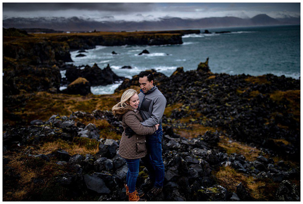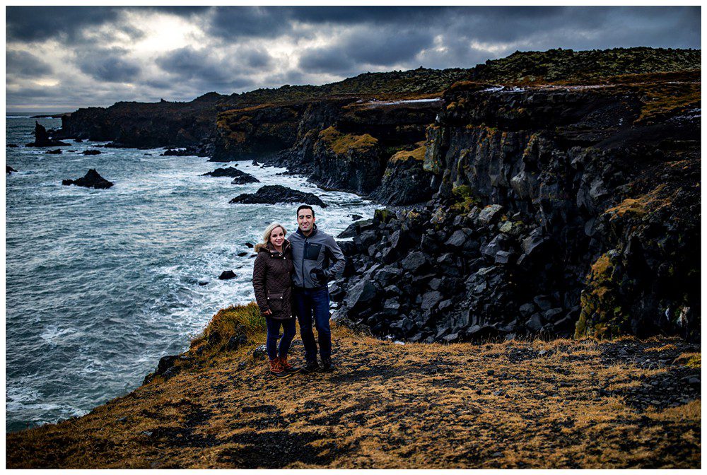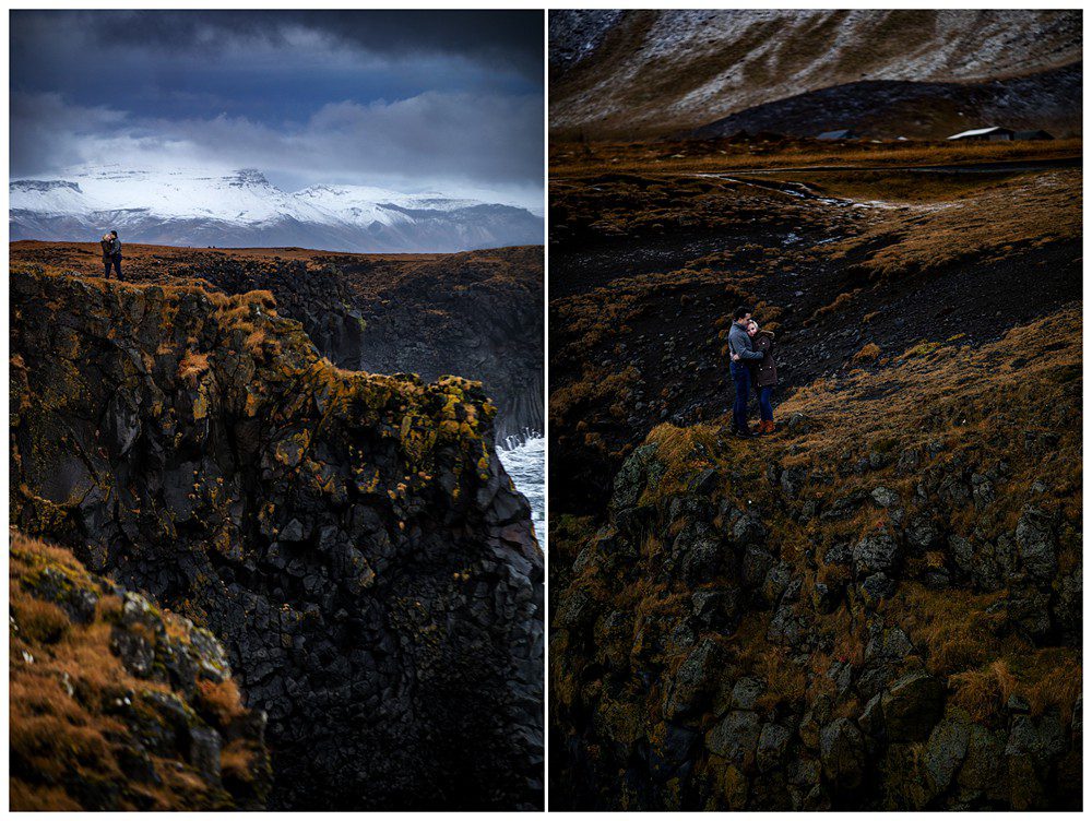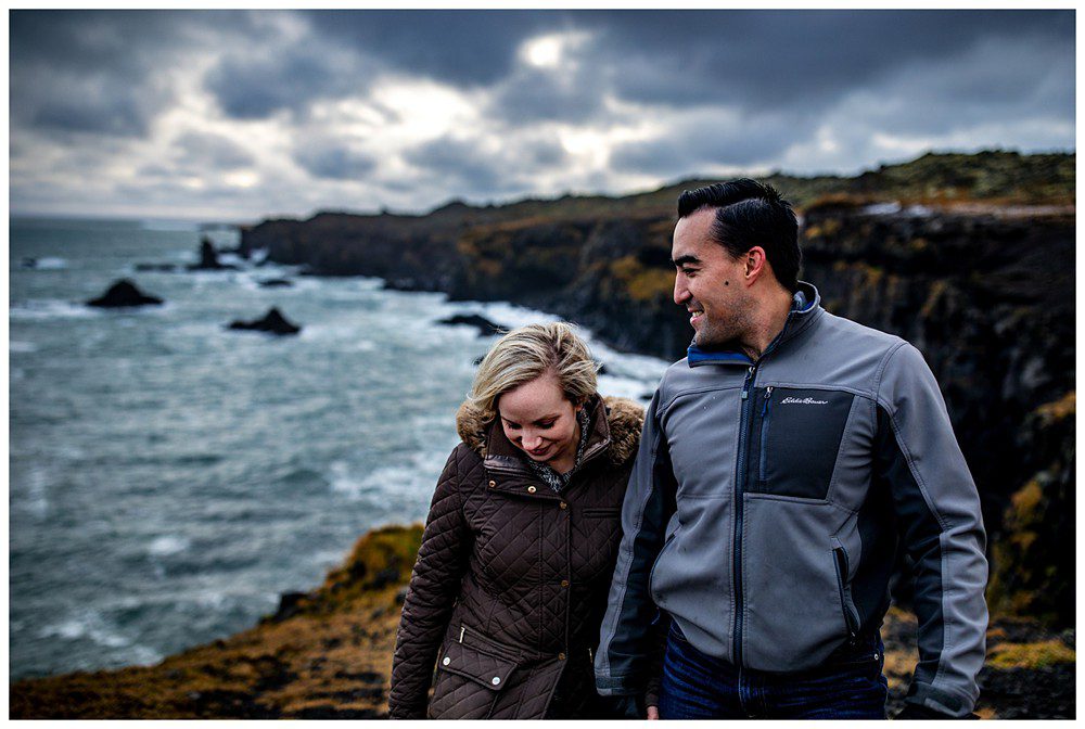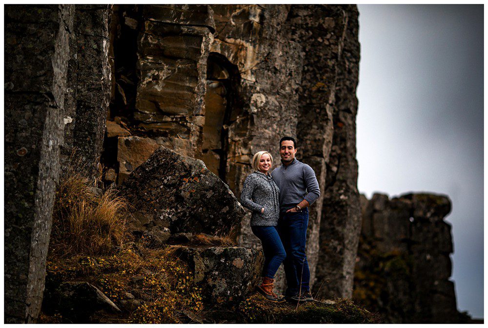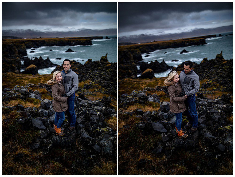The next day, we all slept in a little bit and then headed Northwest to Snafellsness Peninsula. Kim and Scott didn’t get engagement portraits back in their home of Boston and decided to use their second day of portraits to take images in their everyday wear. We began our day at some lesser known cliffs, climbing around and attempted to climb to the top. Myself and Kim decided we like our lives, and that we’d rather live to see another day than try to do the jump move required to reach the top of the platform.