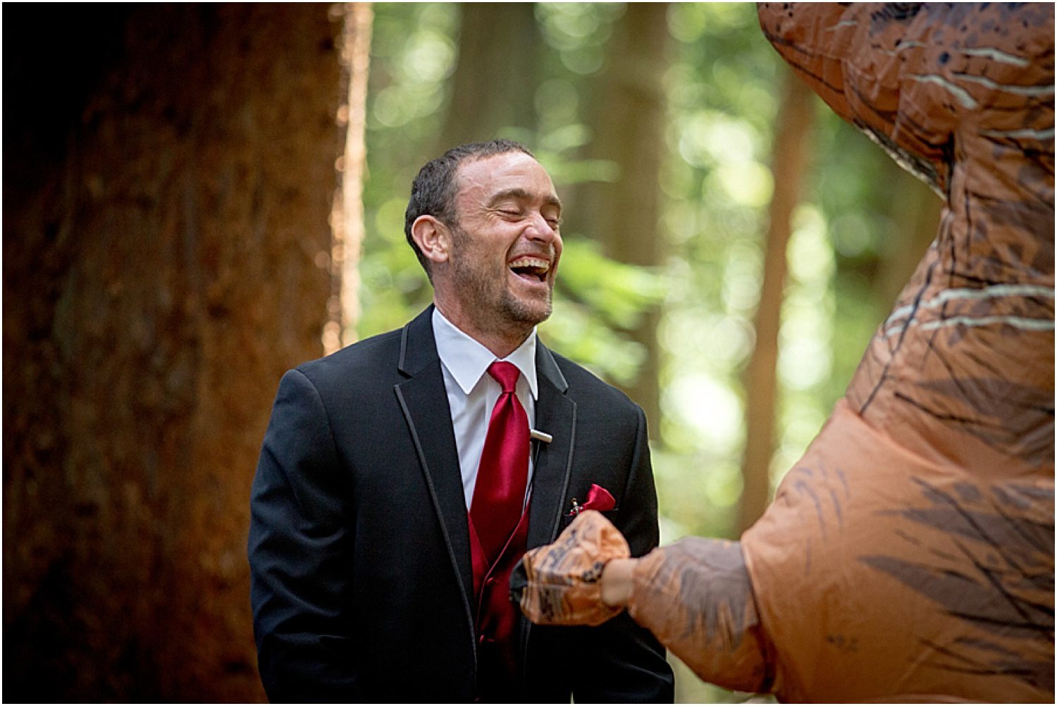 I knew that Kat had a surprise first look planned for Tim, but to actually see the T-Rex costume idea unfold was probably the hardest I’ve ever laughed behind the camera.