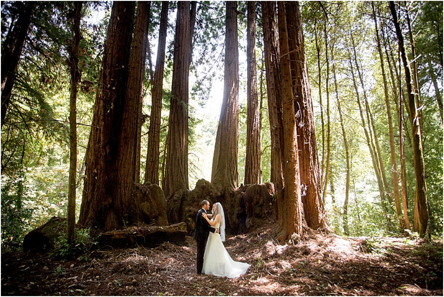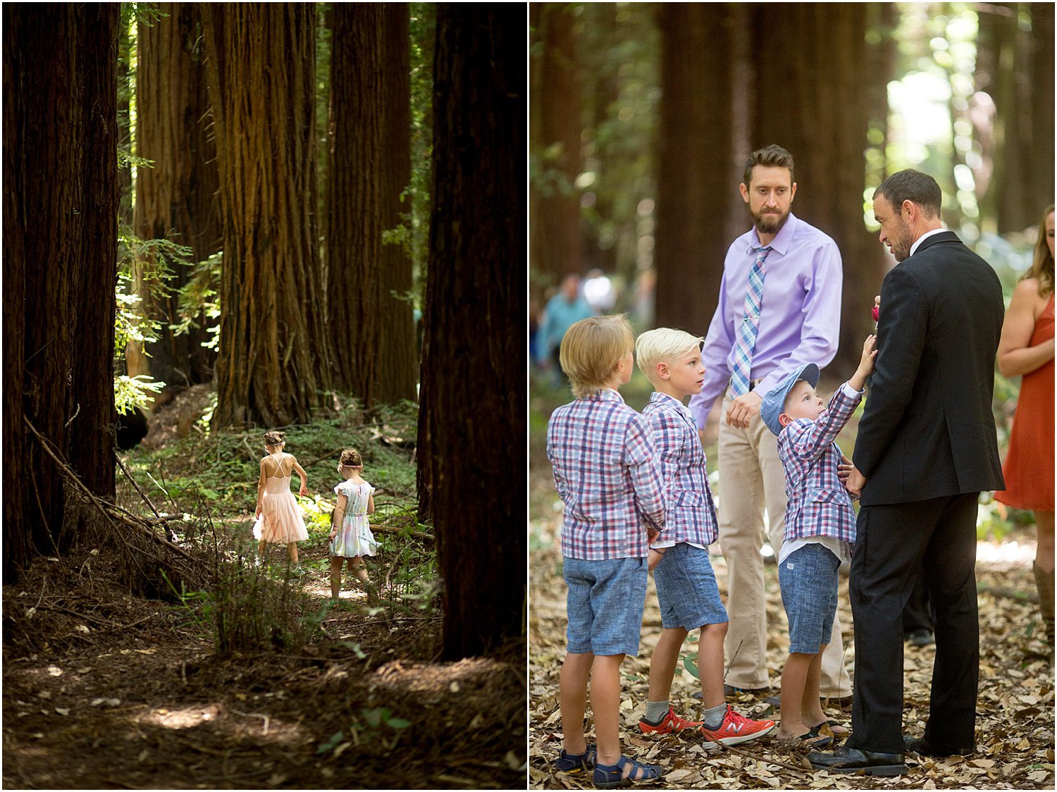 The California redwoods and sequoias – a photographer’s dream to photograph. When I talked to Kat and Tim about their Aptos wedding, and she told me about the Forest of Nisene, I may have done a happy dance in the car. Not only was the wedding being held in the forest, but it was on a trail Kat grew up hiking, and at a fairy circle (where the base of the trees begin to grow together, creating a circle enclosure). My amazing secondary photographer (the awesome Molly) and I drove straight to Aptos after arriving at Santa Cruz, arriving to see the amazing light falling through the trees and onto the forest floor.
