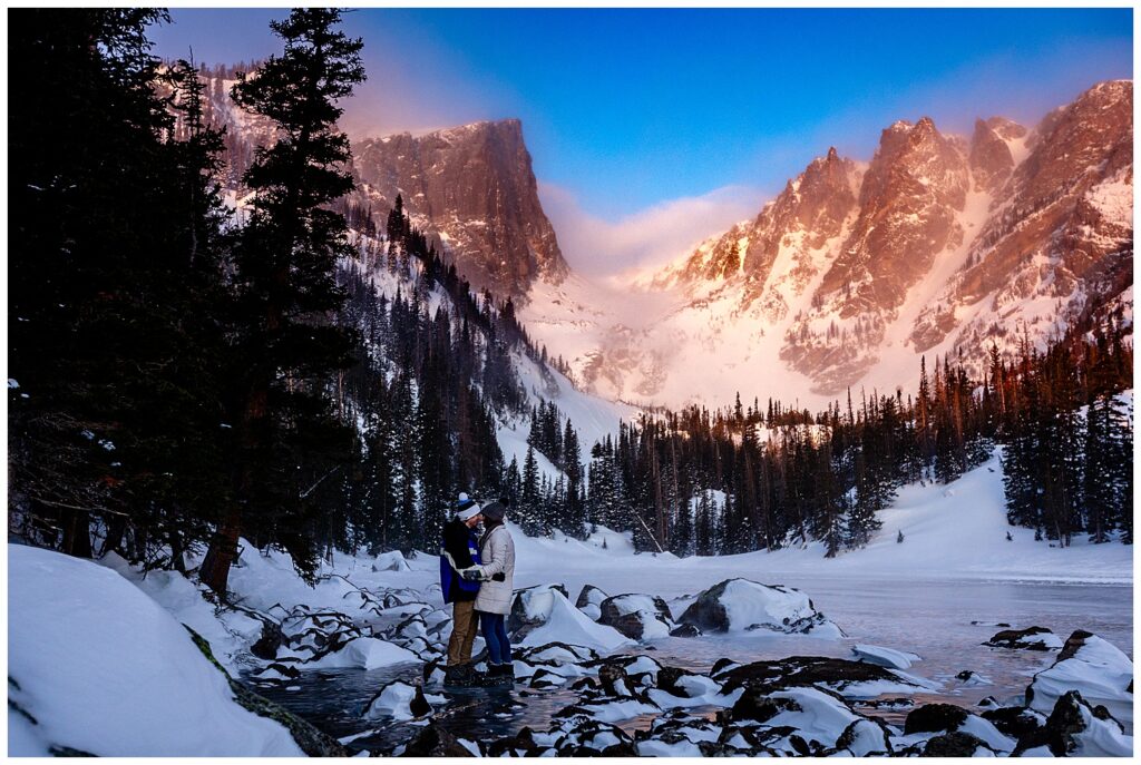 Erin and John’s Dream Lake Engagement | Winter Hiking in Rocky Mountain National Park