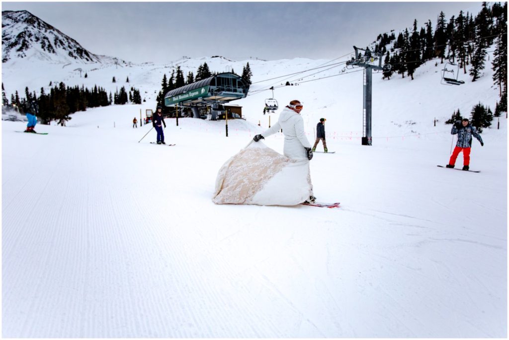 When I talked to Audrey about her and Ted’s elopement, I was so excited to hear that they wanted to spend the day up on the mountain on their boards. They got engaged up on the Zuma bowls, and even named their doggo Zuma after the famous runs. Getting married up at Arapahoe Basin made perfect sense for the pair.