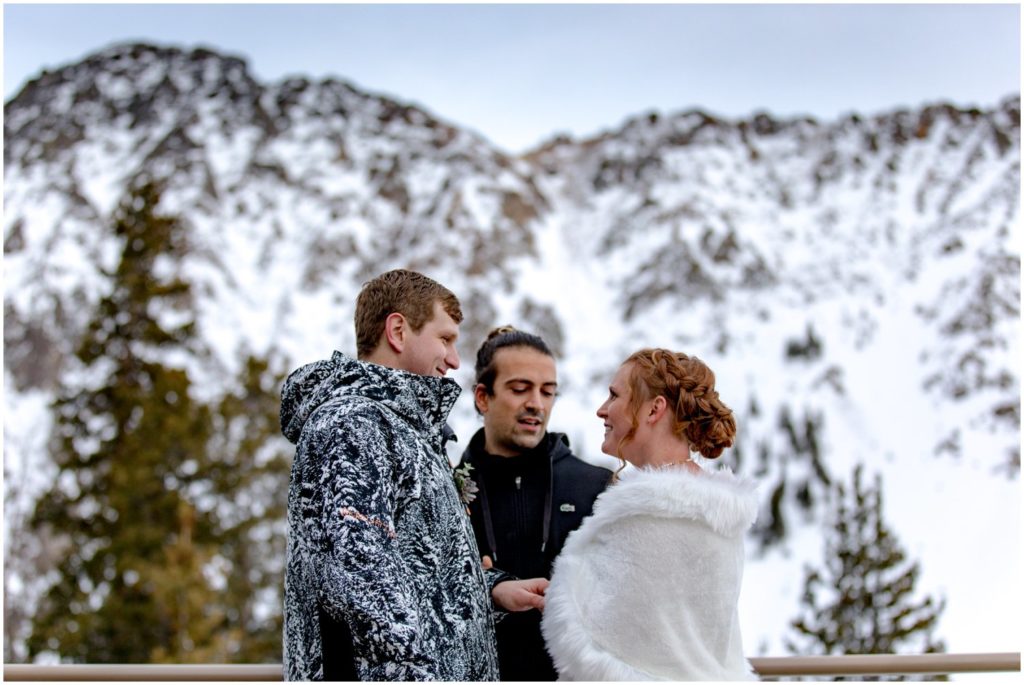 Once we boarded into the lodge, we were greeted by all of Audrey and Ted’s family and friends – including their adorable daughter. The couple kept their snow attire on for the ceremony – which I absolutely LOVE. I think that bringing pieces of who you truly are into your wedding is absolutely amazing. As I told a few guests – this was the MOST Colorado wedding ever. And with how much I LOVE my home state of Colorado, I’m honored to have been invited to photograph such an occasion.