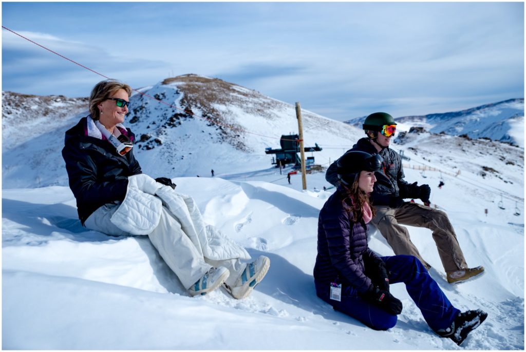 We met near the base, and headed up the Black Mountain Express towards the top of the mountain. One thing that was important to Audrey and Ted was to spend a few minutes near the Montezuma Bowl and take some photos of the two of them with and without their boards.