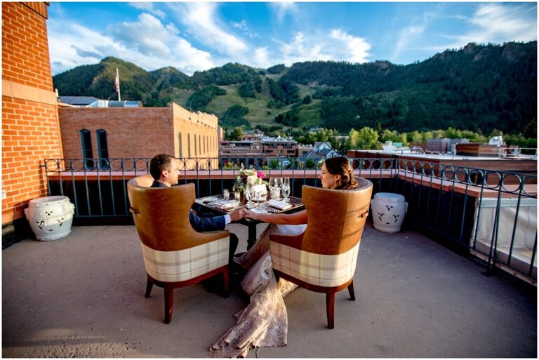 After a dip in the cold alpine water, we made our way back down the trail and to the Hotel Jerome for cake and toasts. Calling more family to join in on the elopement day celebrations, Jessica and Jason ate delicious cake and made their union legal with the signing of their marriage license. To cap off their evening, the Hotel Jerome had a private dinner on the rooftop waiting for the newlyweds.