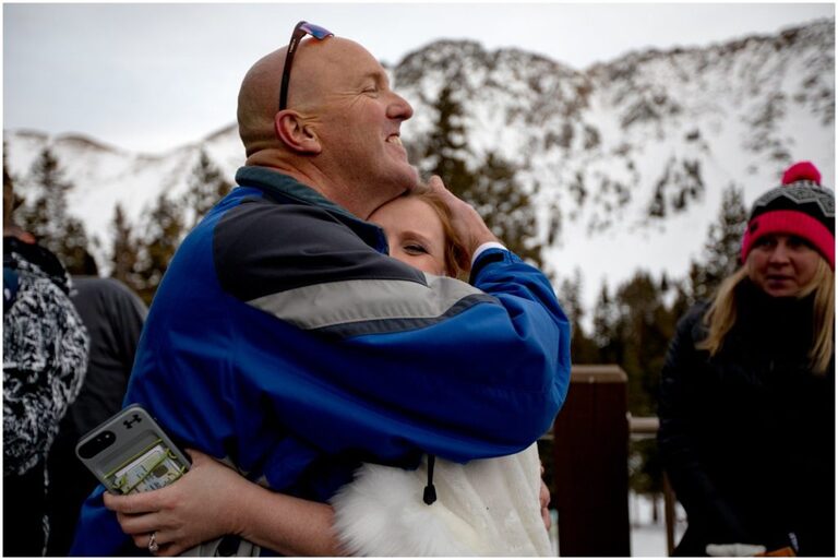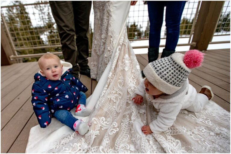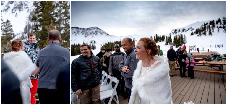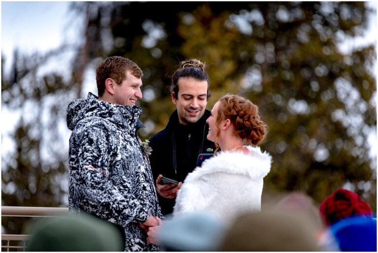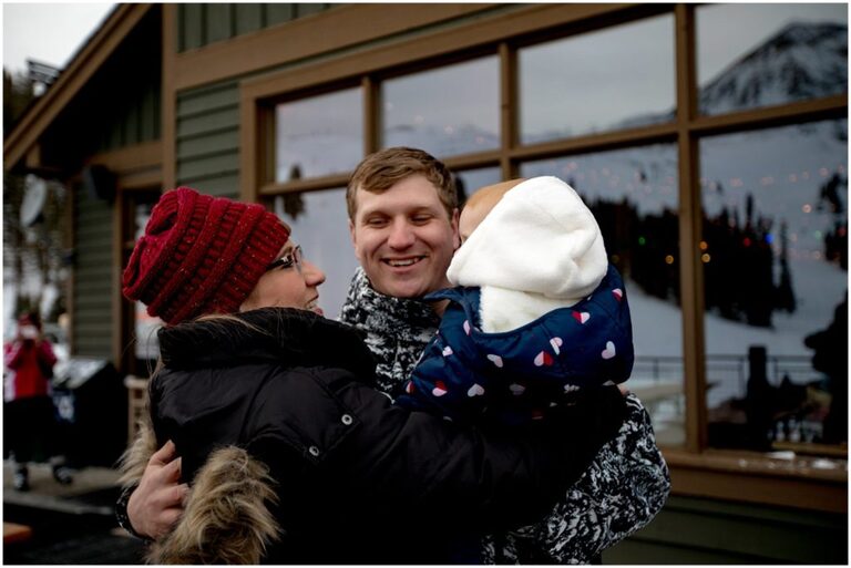 Once we boarded into the lodge, we were greeted by all of Audrey and Ted’s family and friends – including their adorable daughter. The couple kept their snow attire on for the ceremony – which I absolutely LOVE. I think that bringing pieces of who you truly are into your wedding is absolutely amazing. As I told a few guests – this was the MOST Colorado wedding ever. And with how much I LOVE my home state of Colorado, I’m honored to have been invited to photograph such an occasion.