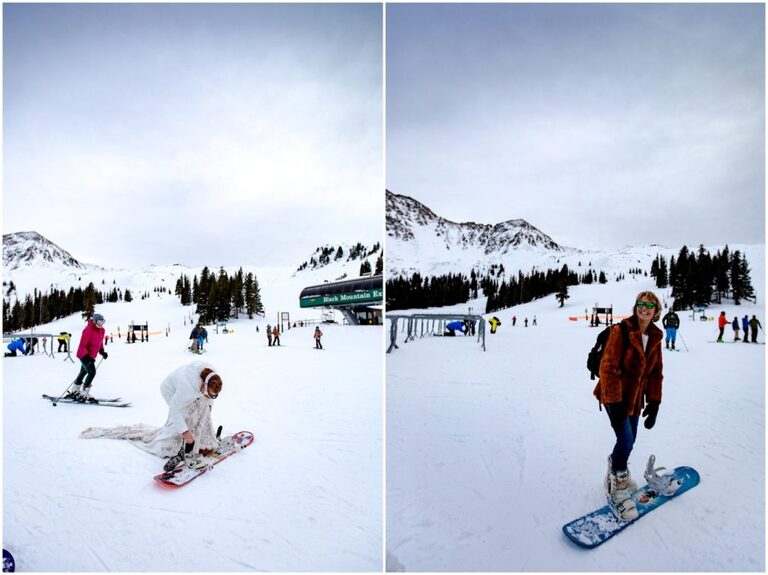 When I talked to Audrey about her and Ted’s elopement, I was so excited to hear that they wanted to spend the day up on the mountain on their boards. They got engaged up on the Zuma bowls, and even named their doggo Zuma after the famous runs. Getting married up at Arapahoe Basin made perfect sense for the pair.