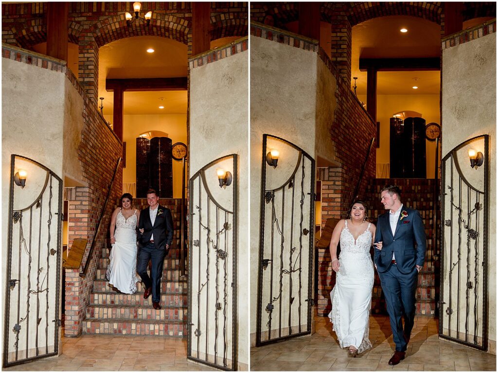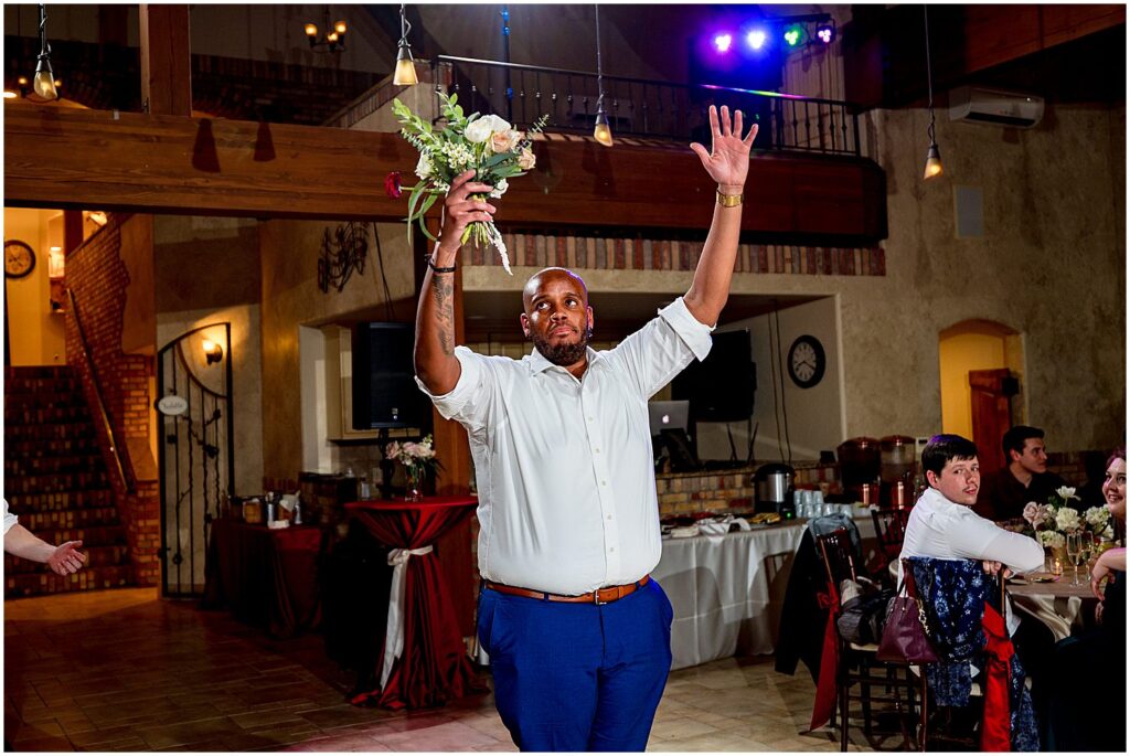 Once the bride and groom sealed their vows with a kiss, the wedding guests all moved inside the chateaux to continue the celebration. The warmth of the indoor setting was a welcome relief from the cold outside. The chateaux was beautifully decorated beautifully by Lace and Lilies – with large floral centerpieces and candles, creating a cozy and inviting atmosphere.