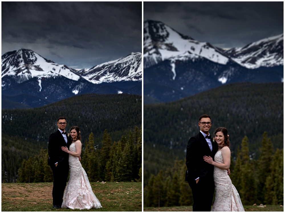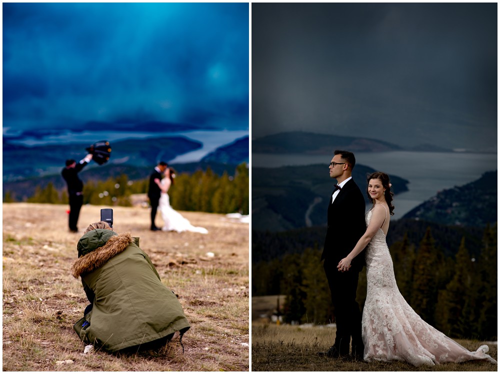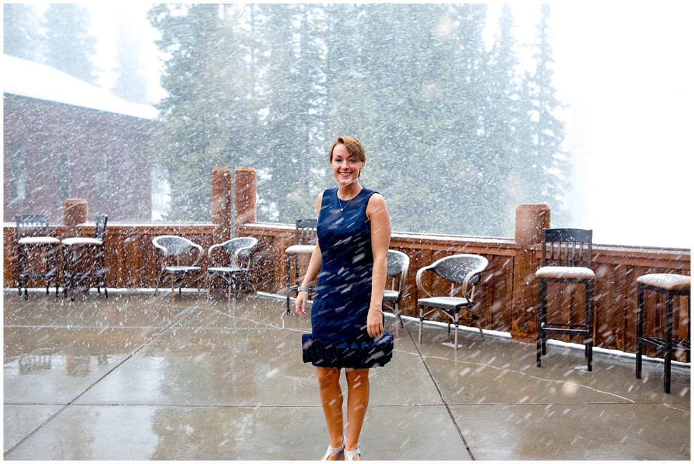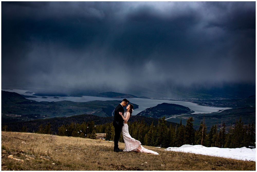 This year has been especially interesting for weather – as the summer had quite a cold start. The temperatures didn’t rise into the 90’s until July. On June 22, 2019 – Maddie and Braton were married on Keystone Mountain. Just following the summer solstice, they had their wedding on the first official day of summer. We had been watching the weather report the weeks leading up to the wedding day, and knew that we’d be heading up in the mountain with storms approaching. In true Colorado fashion, the clouds opened up and a massive storm approached the mountain. Starting with rain and a thunderstorm, the skies turned a deep blue. After a small clearing of nice weather, the snow came in. The forecast was for 8-12 inches, and I’m sure we ended up hitting at least 8″ by the end of the evening. A massive summer snow had hit for the first time in nearly a decade.