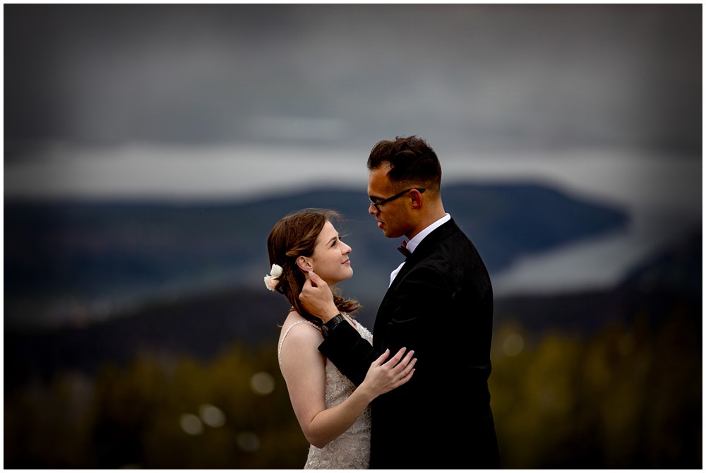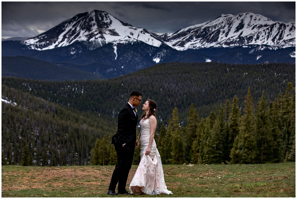Maddie and Braton decided to hold their ceremony inside, as the temperatures kept dropping and the snow kept falling. We had a few breaks of time waiting on the gondolas to begin running again, and they were absolute troopers and headed out into the freezing wind for portraits. I’m sure it’s no secret, but I’m a sucker for dramatic skies. I love capturing all the elements that go along with hosting a mountain wedding… and Maddie and Braton’s Keystone wedding was certainly a perfect day to capture the beautifully chaotic weather.