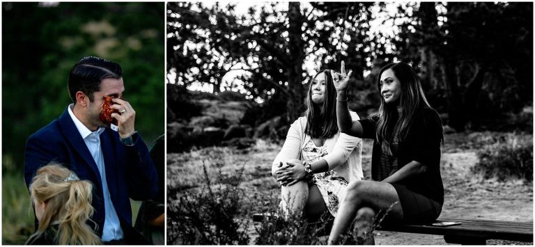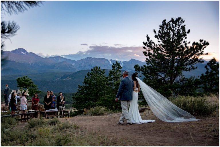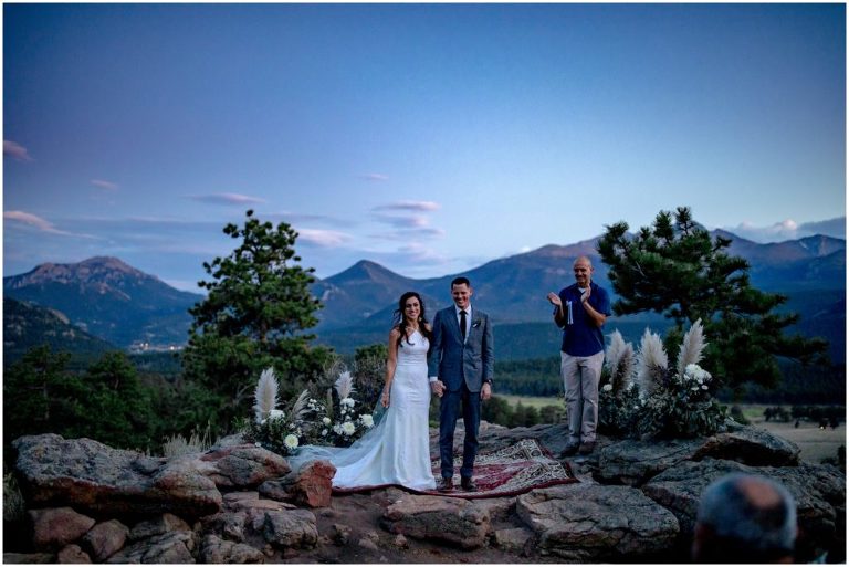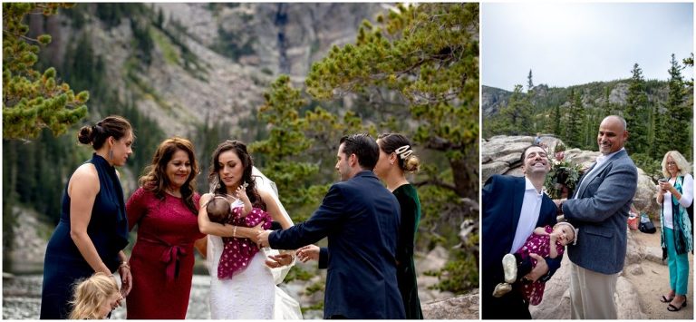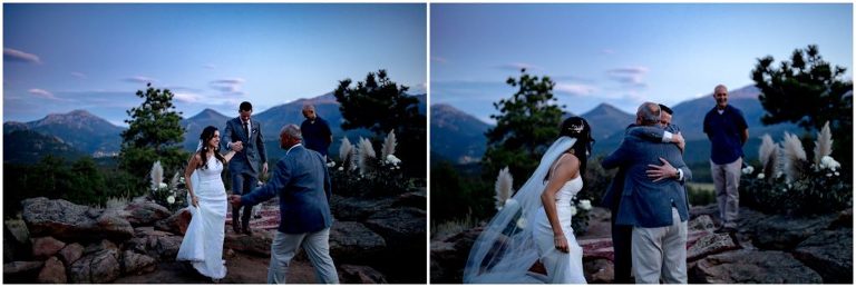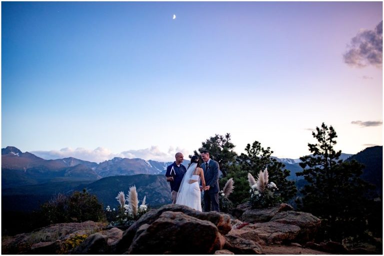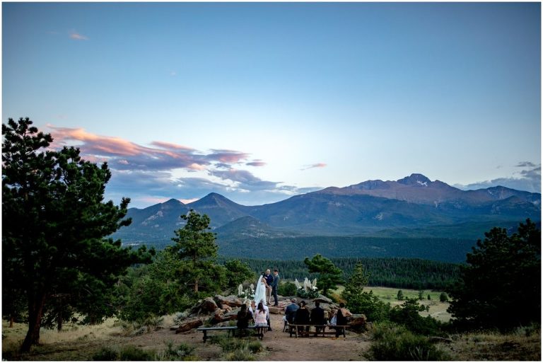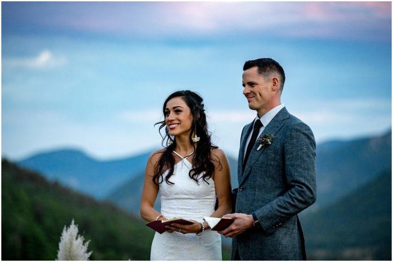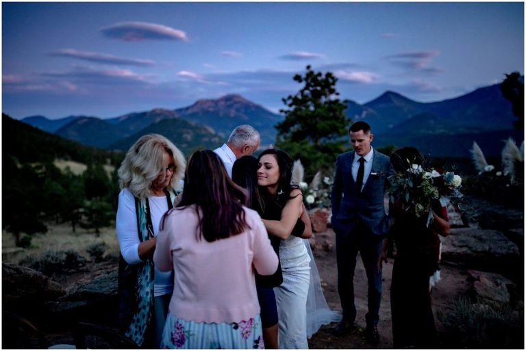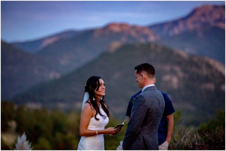As the sun was setting and casting a lovely pink glow on Longs Peak in the background, Jenna and Ben said their vows to one another. During their ceremony, they turned to their loved ones and said something personal and special to each family member that was in attendance for their elopement.