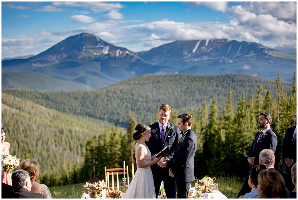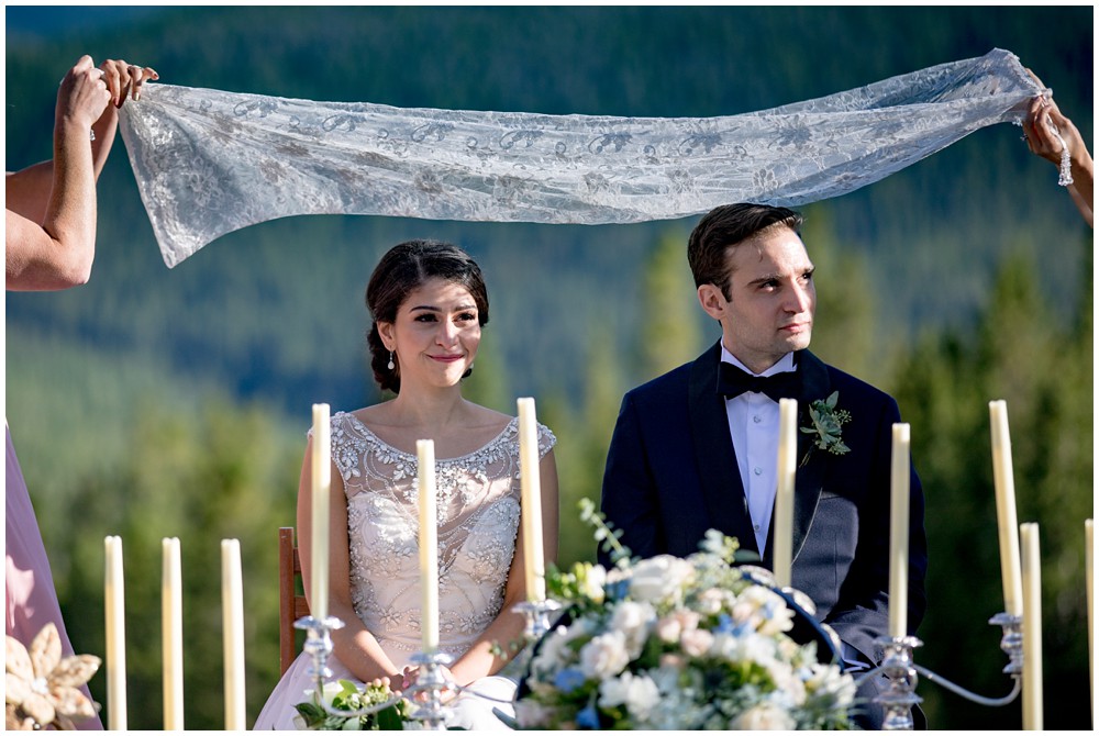 Fast forward to this past July, and it was time for their Persian and American fusion wedding at Timber Ridge Lodge in Keystone. When Pooneh and I first spoke on the phone and she told me about all the amazing traditions that they would be incorporating into their wedding, I was giddy with excitement. Witnessing cultural wedding traditions is one of my favorite things about my job. I love to be invited to partake in all the unique ways humans around the world celebrate the union of two people. For their mountain top ceremony atop the North Peak, they first began with a traditional American ceremony. The wedding site faces both the stunning Gore and Tenmile mountain ranges – with Mount Guyot and Bald Mountain booming up in the background. Once it was time to begin the Persian ceremony, Pooneh and John made their way behind the Sofreh to be showered with all things sweet. I love the tradition of bestowing the newlywed couple with sweet items, to signify a “sweet start”. Another portion of the wedding that I loved was when Pooneh was asked if she would take John – to which she waited to be asked three times and finally responded BELLA, BELLA, BELLA!! I think anytime anyone wants something from me, I’m now going to respond bella, bella, bella.
