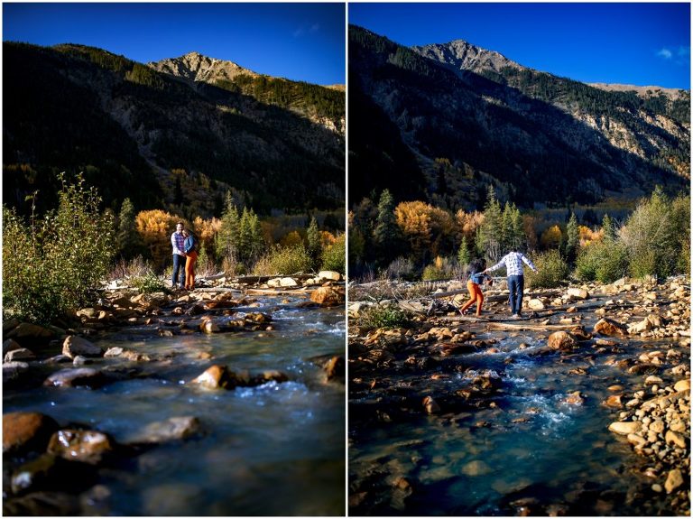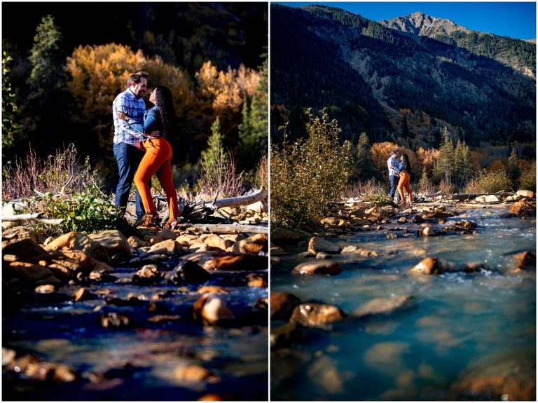 To end our time together, we headed just a few miles up Independence Pass to the riverfront. This area has some of the coolest milky-teal waters that I’ve seen. There must be a mineral that is in the nearby rocks, as the water is unlike any other teal I’ve personally experienced here in Colorado. To add to the amazing-ness of this area, Tomi’s freaking stunning orange jumpsuit popped against the mountains and aspens. I still feel as I told her that morning, I think she should be a model for the manufacturing company… that outfit was made for her!!