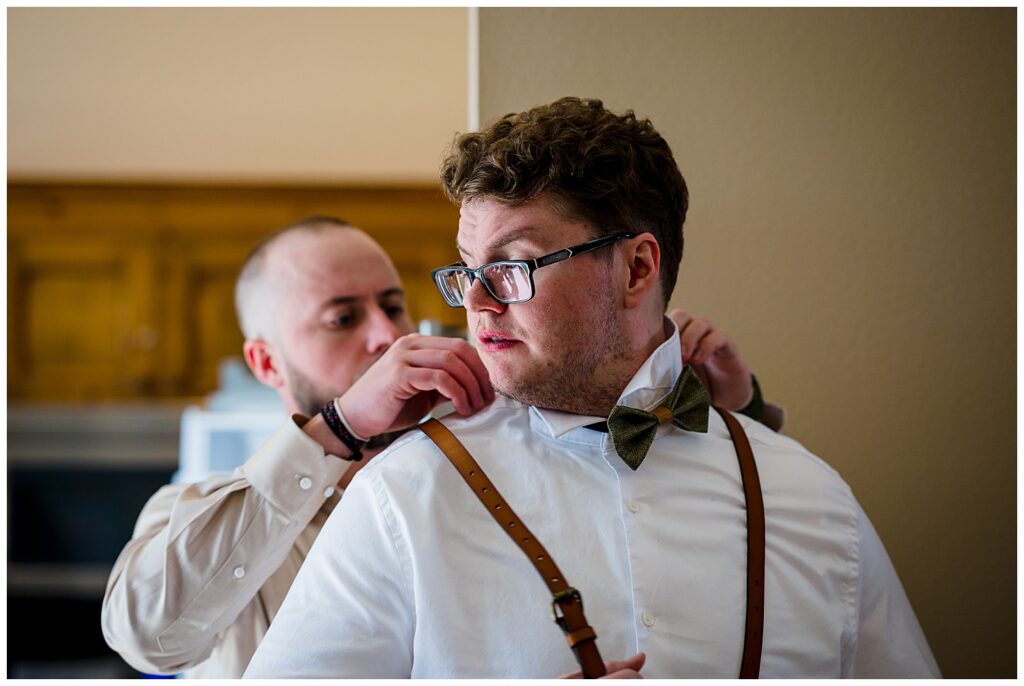 Kelly and Jacob both got ready surrounded by their family and friends in AirBnBs located just a few minutes from their venue. One of my favorite parts about larger getting ready rooms and having all your people join you during that time is the ability to capture some really great storytelling moments. I’m sure that I’ve said it at every wedding that I’ve photographed – but the best way to get amazing (and truly candid) photographs is the “I’m not here” mantra. Just pretend I’m not shoving a giant camera into your face, starting when you’re in your pajamas ;). But in all seriousness, enjoy your time getting ready with your people – whomever they may be. Take photos of one another, laugh, help eachother get dressed. It’s some great time spent with one another.